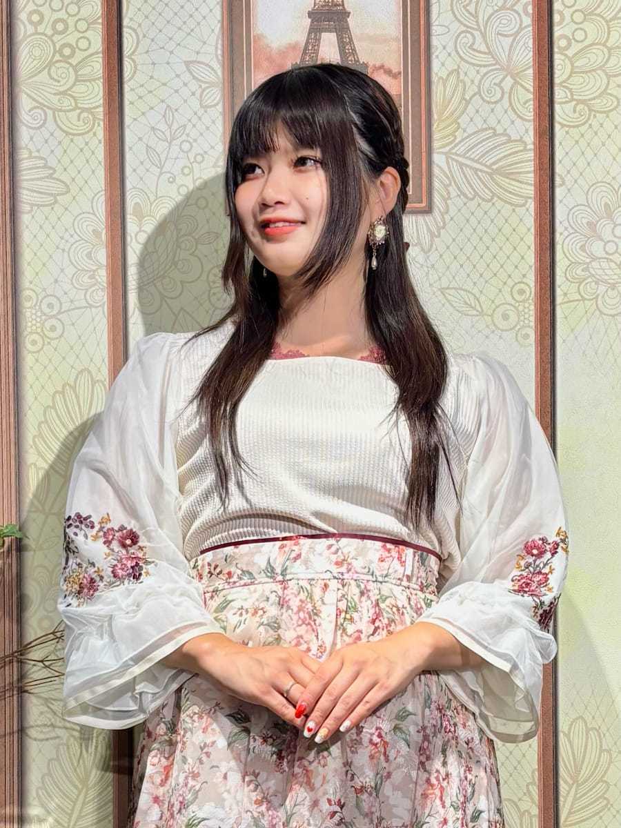 This top is a beautiful piece, with fluffy, voluminous sleeves and delicate cosmos embroidery✨