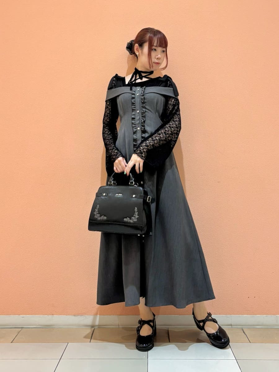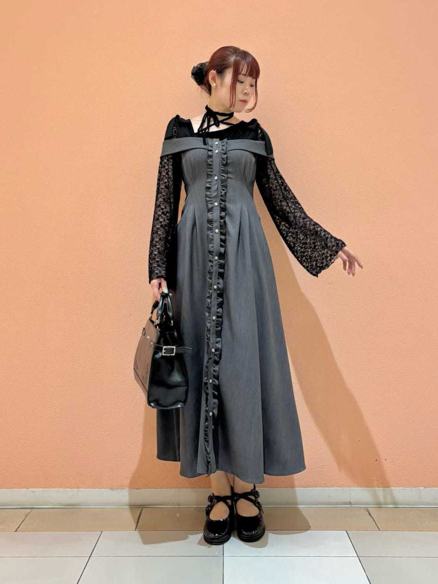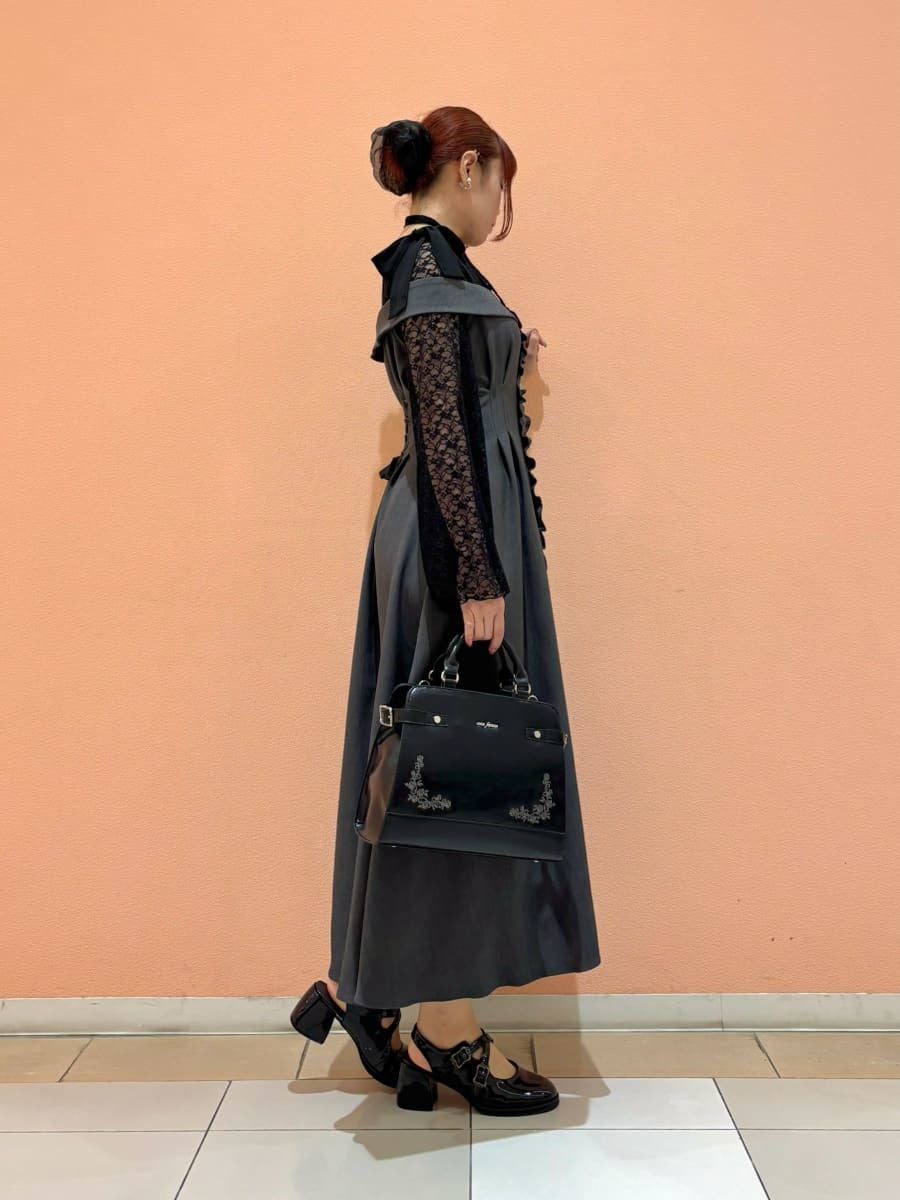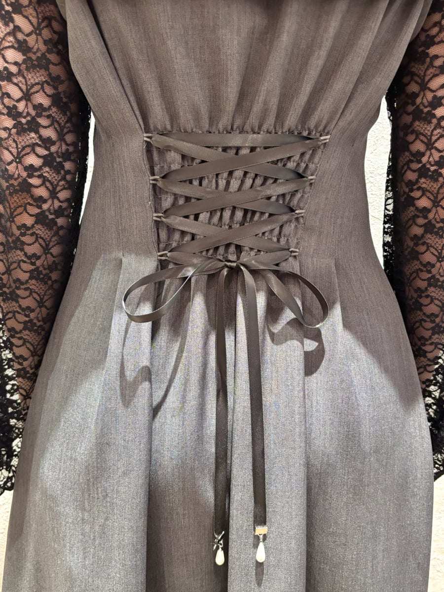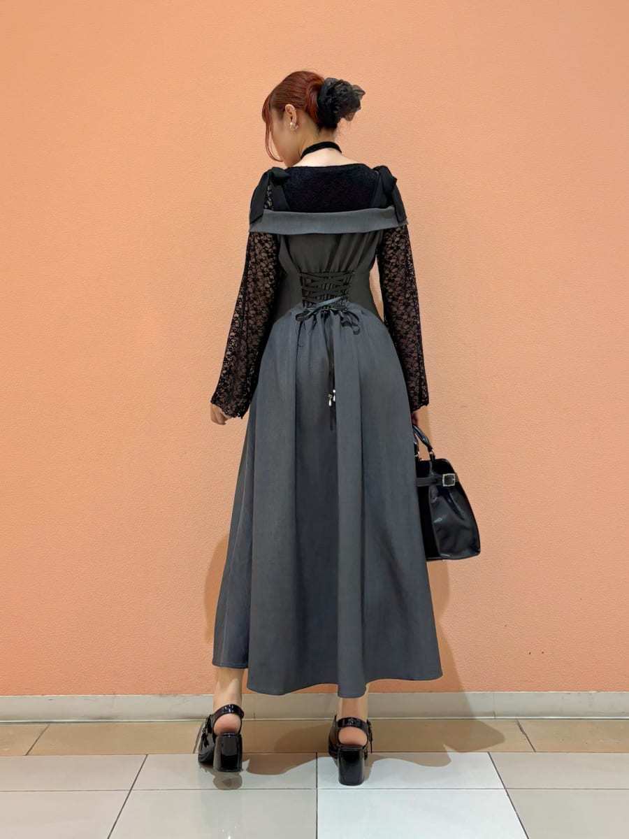 [Dress] This dress has a sleek silhouette with waist tucks and lace-up waistband, while the flared skirt adds volume and elegance. Wear it alone or layered to suit any season ◎