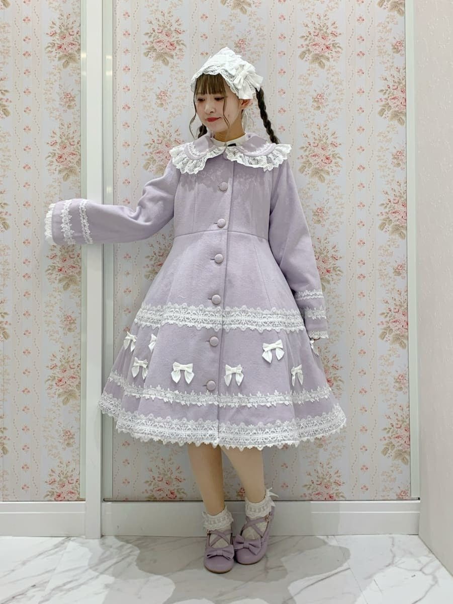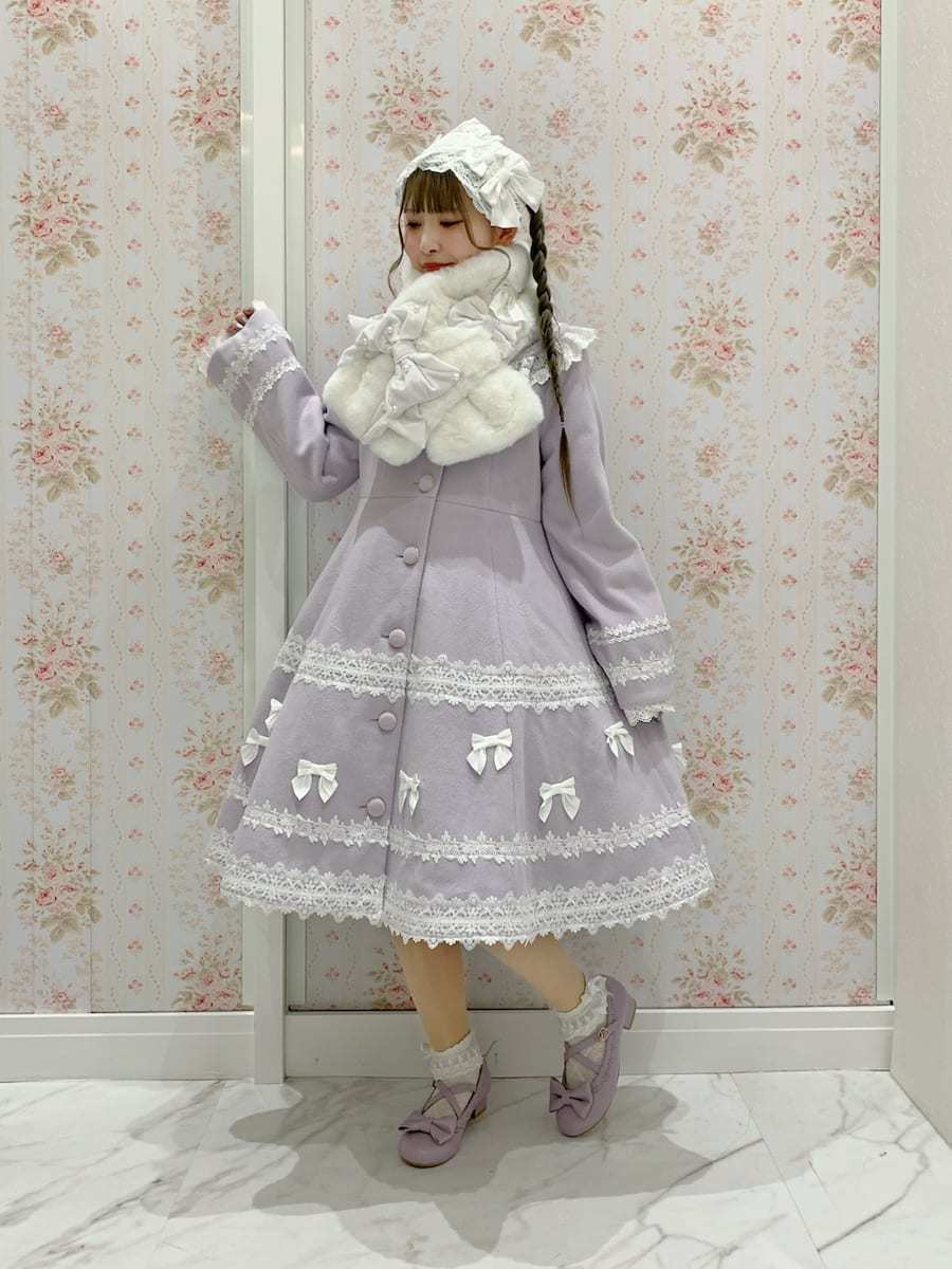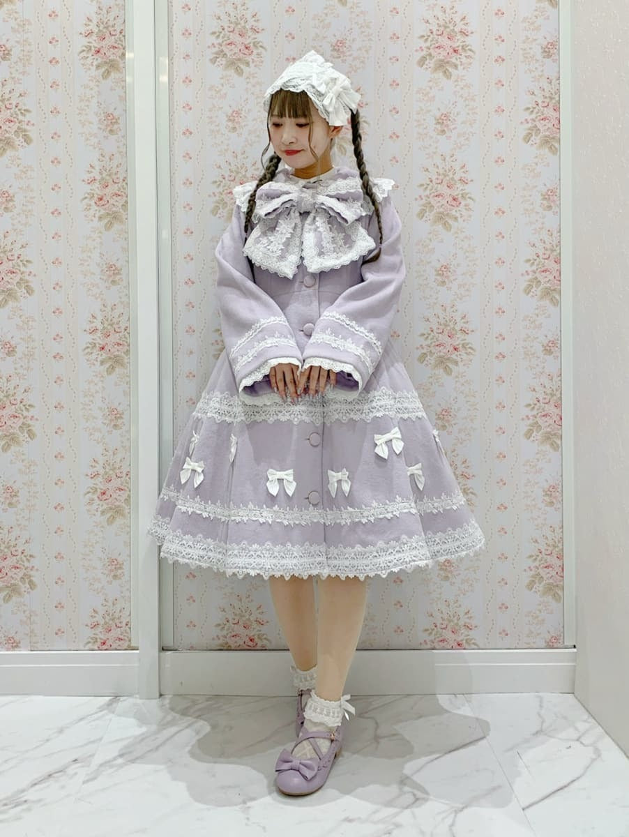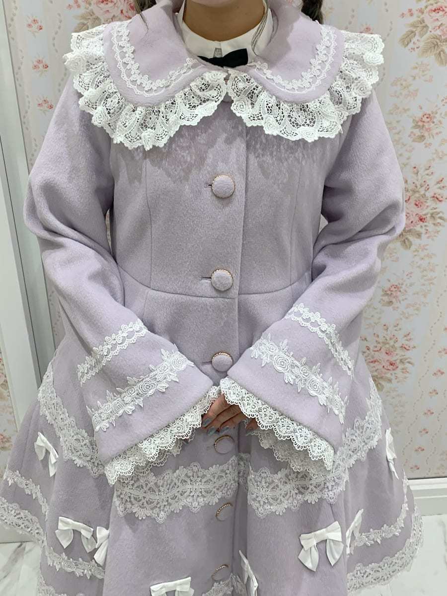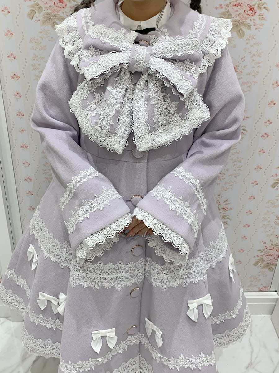 The large ribbon at the chest is removable, so you can swap it out for a scart, or simply wear the coat by itself◎