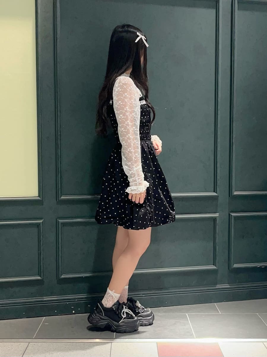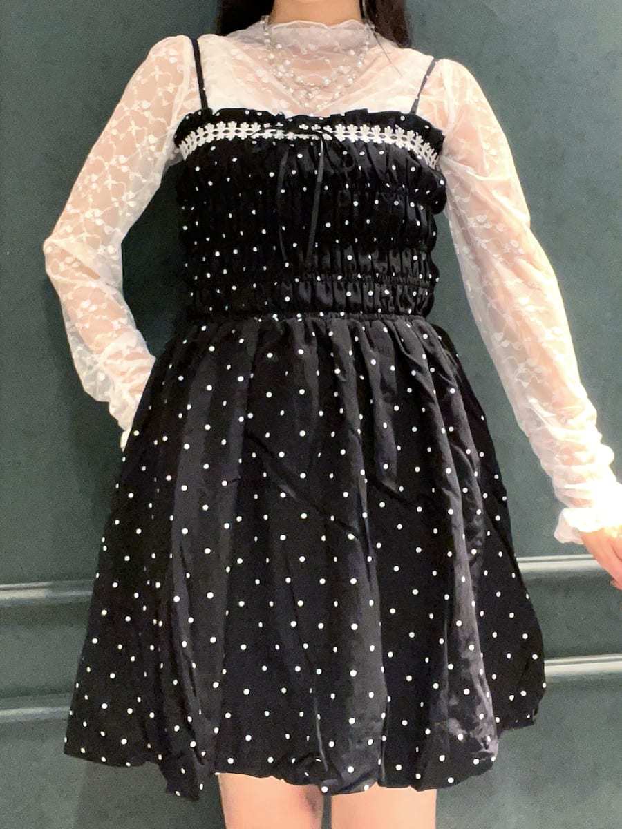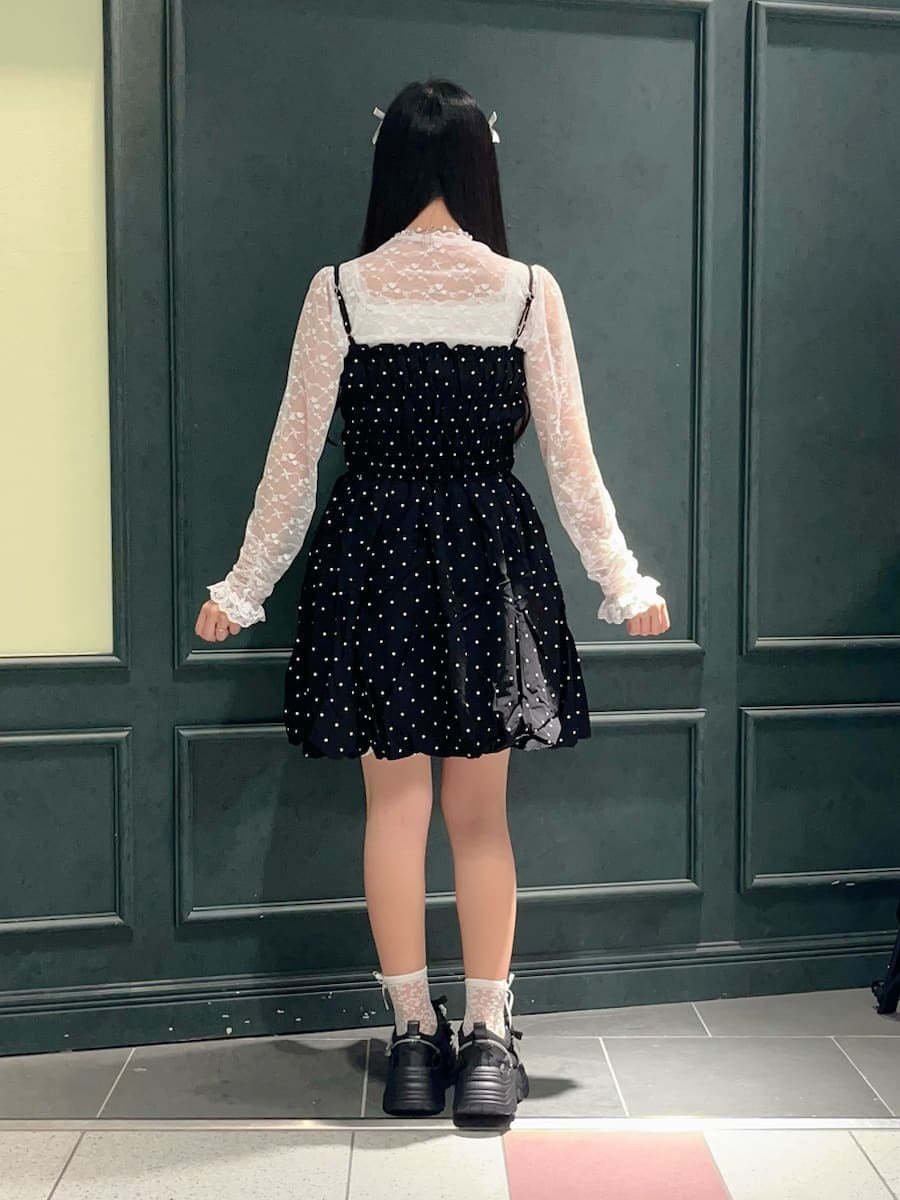 The shirred back makes it easy to put on and take off, and the fluffy balloon design at the hem creates a cute silhouette ◎