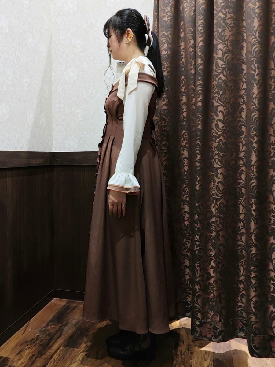 Blouse: Loose-fitting sleeves. ♪ The chest tends to open slightly when you move, so if you're worried about that, we recommend adding hidden snap buttons or pairing it with a cardigan, vest, or jumper skirt. ◎