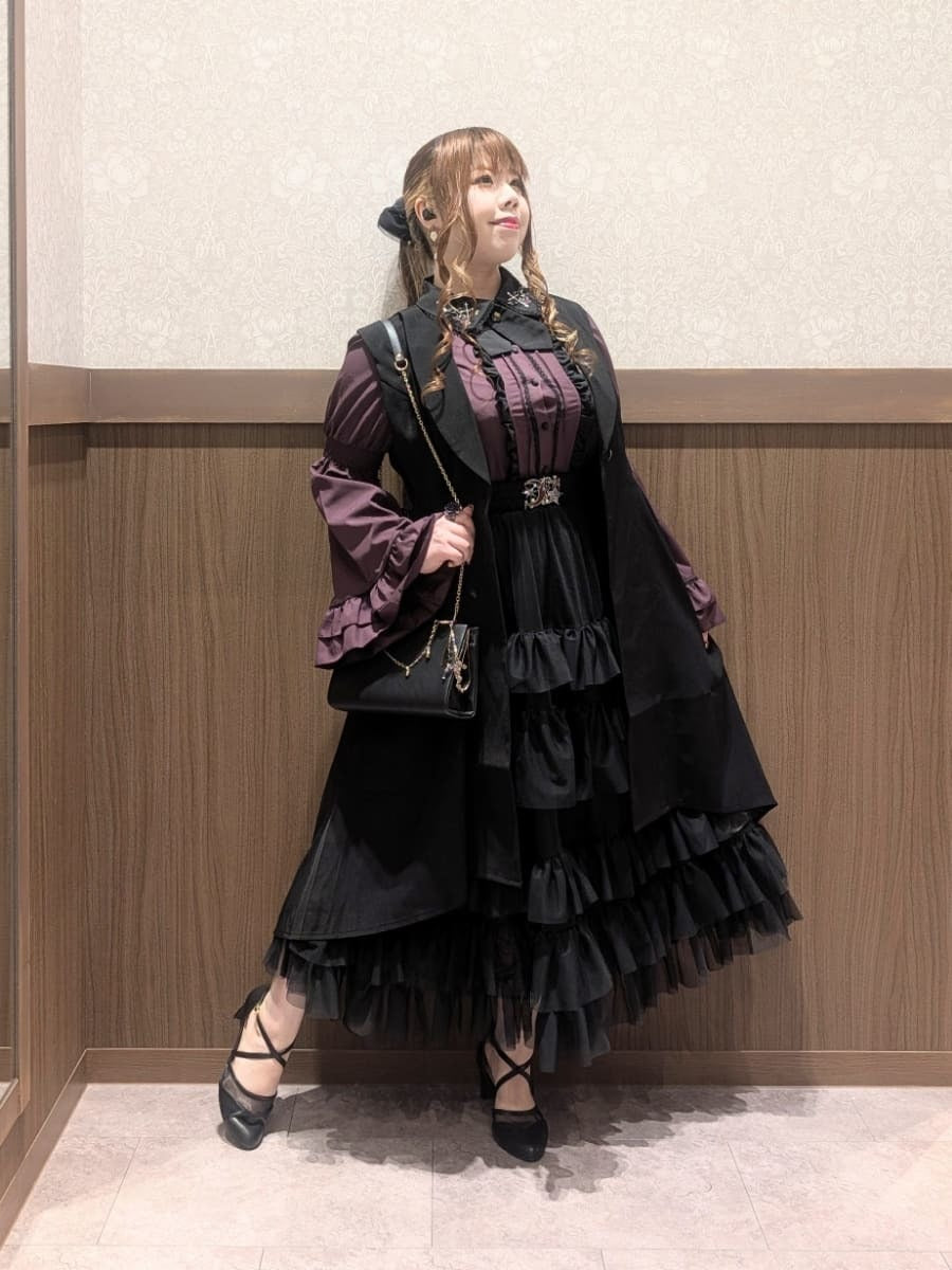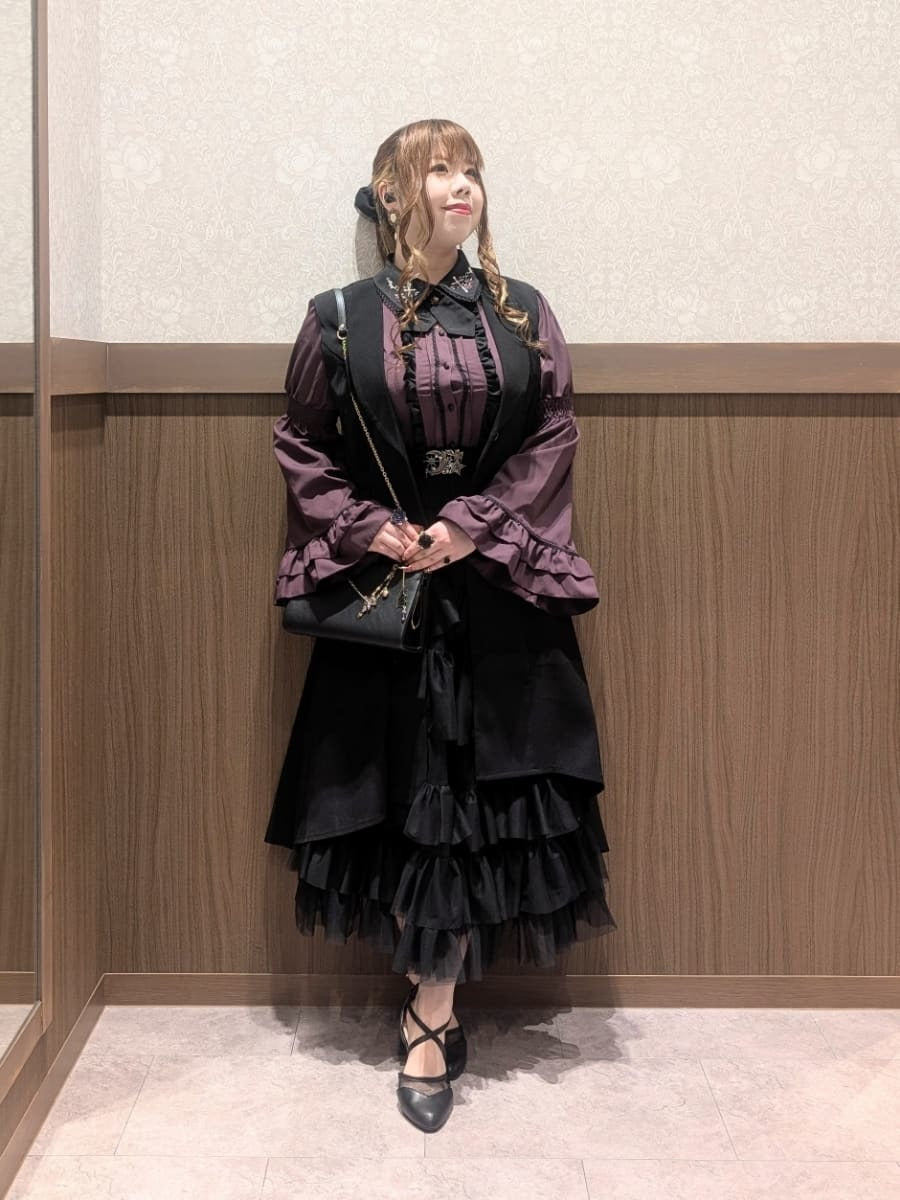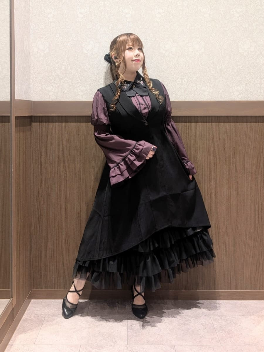 Here's a Halloween outfit using the Cross Rose Embroidery Blouse, Frill Tulle Skirt with Petticoat, and Fishtail Long Gilet.