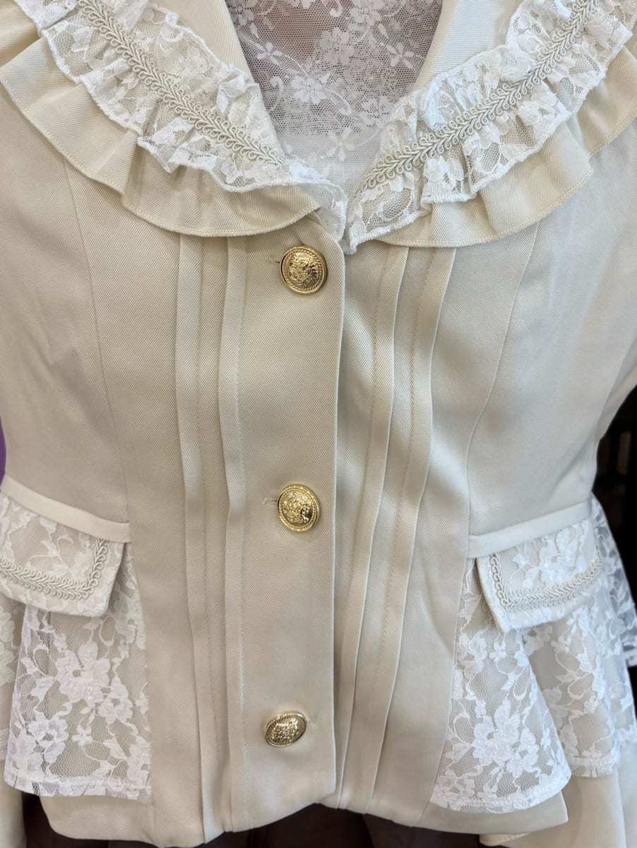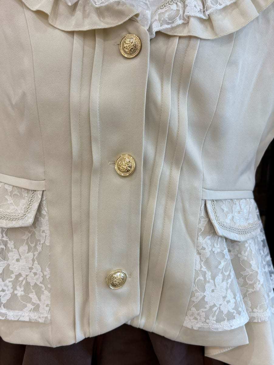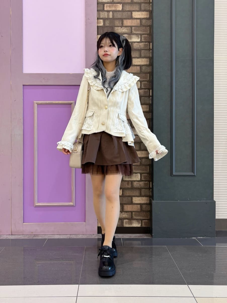 A cute and elegant outfit❄️🎀🤍The coat has ruffles here and there as a highlight🤍The brown skirt has a ribbon in the front so it can be adjusted❕The elastic is stretchy and easy to wear🍫♡