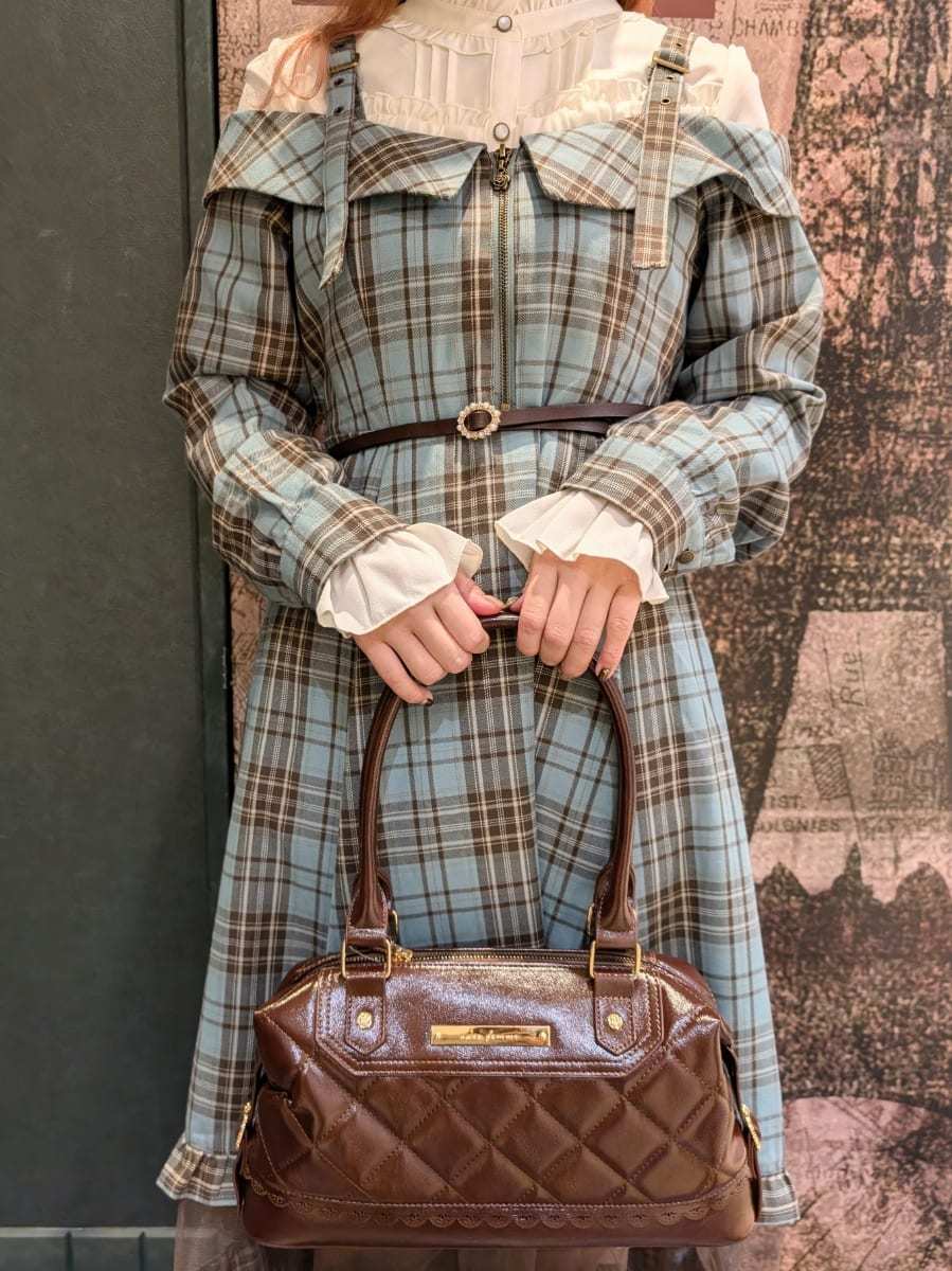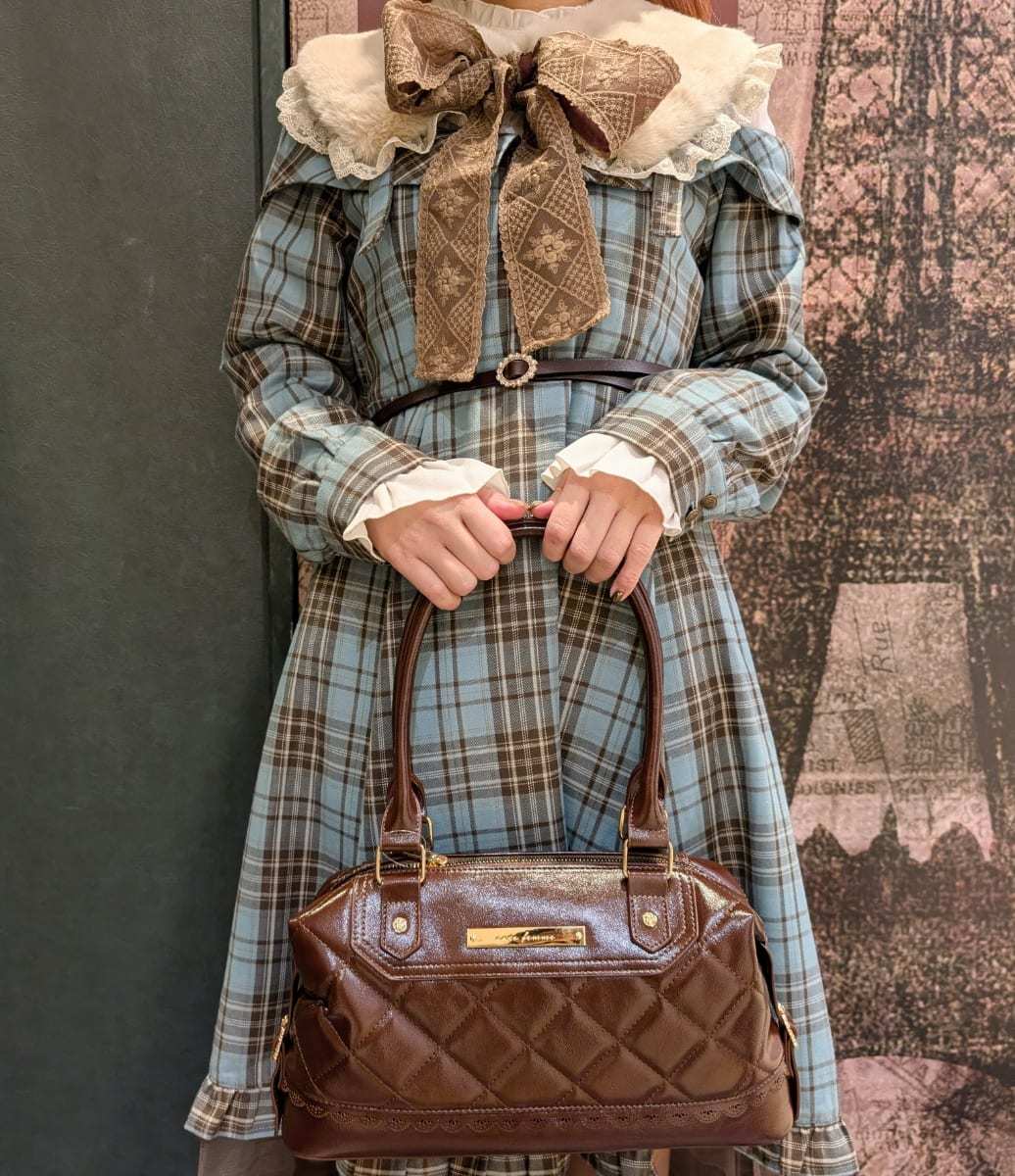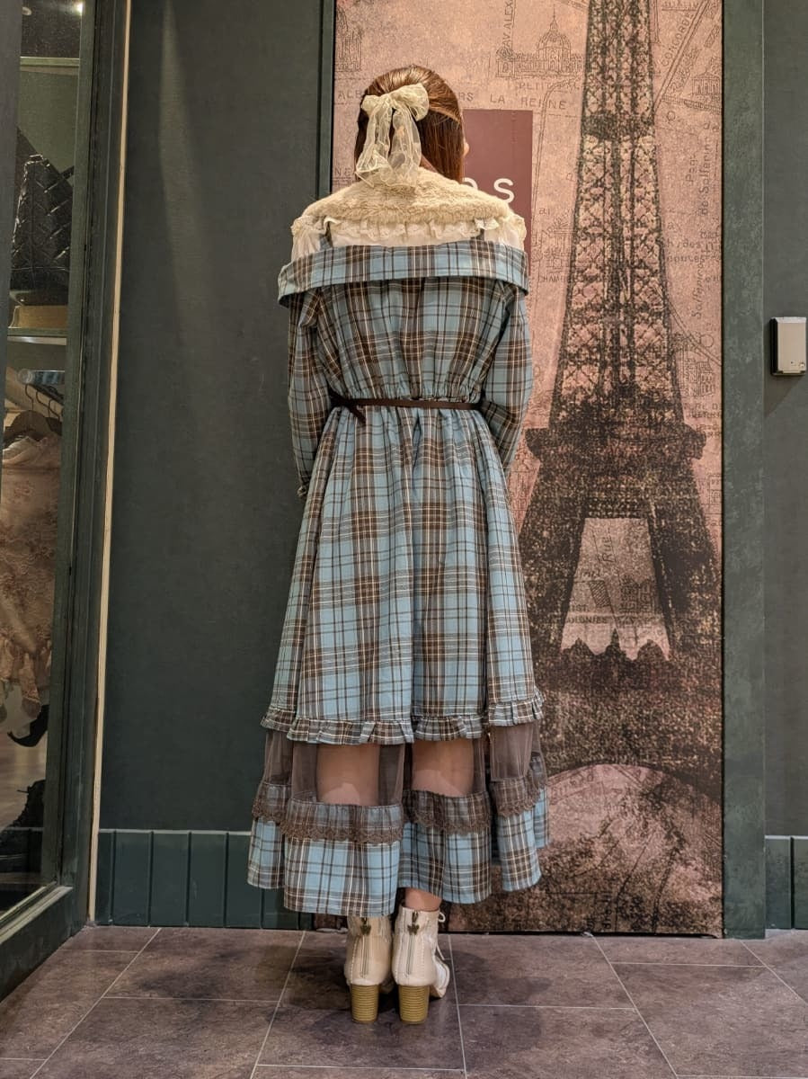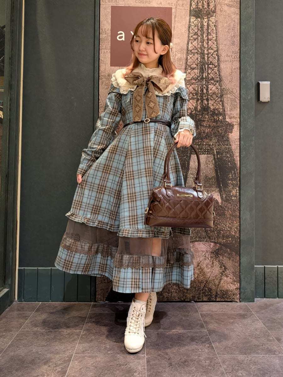 When the weather gets colder, try adding this fur tippetI The large brown ribbon complements the mint-colored plaid ◎
