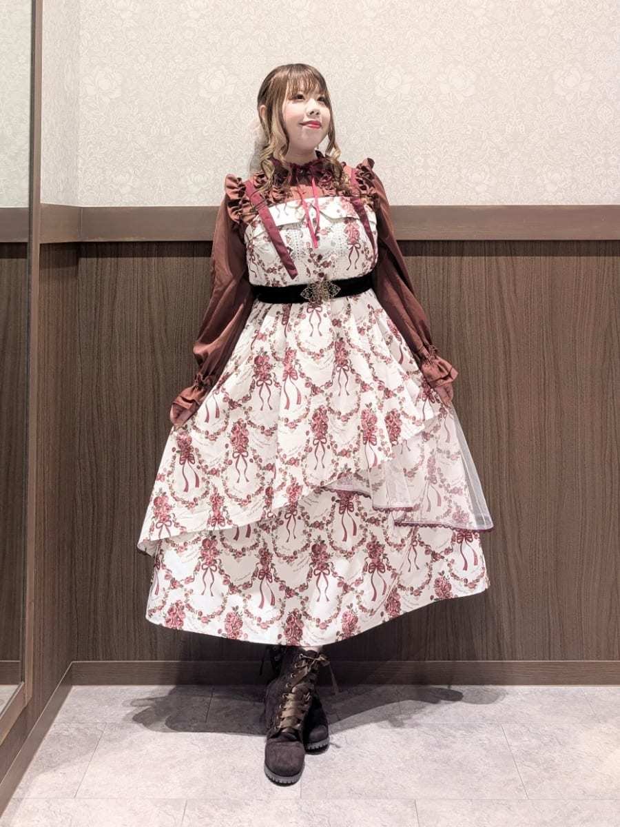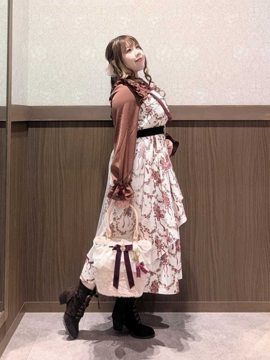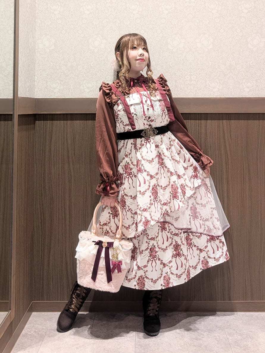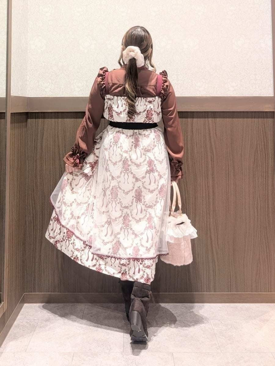 An outing look featuring the Cadeau de Rose Jumper Skirt, an online-exclusive item from our online store anniversary special collection.