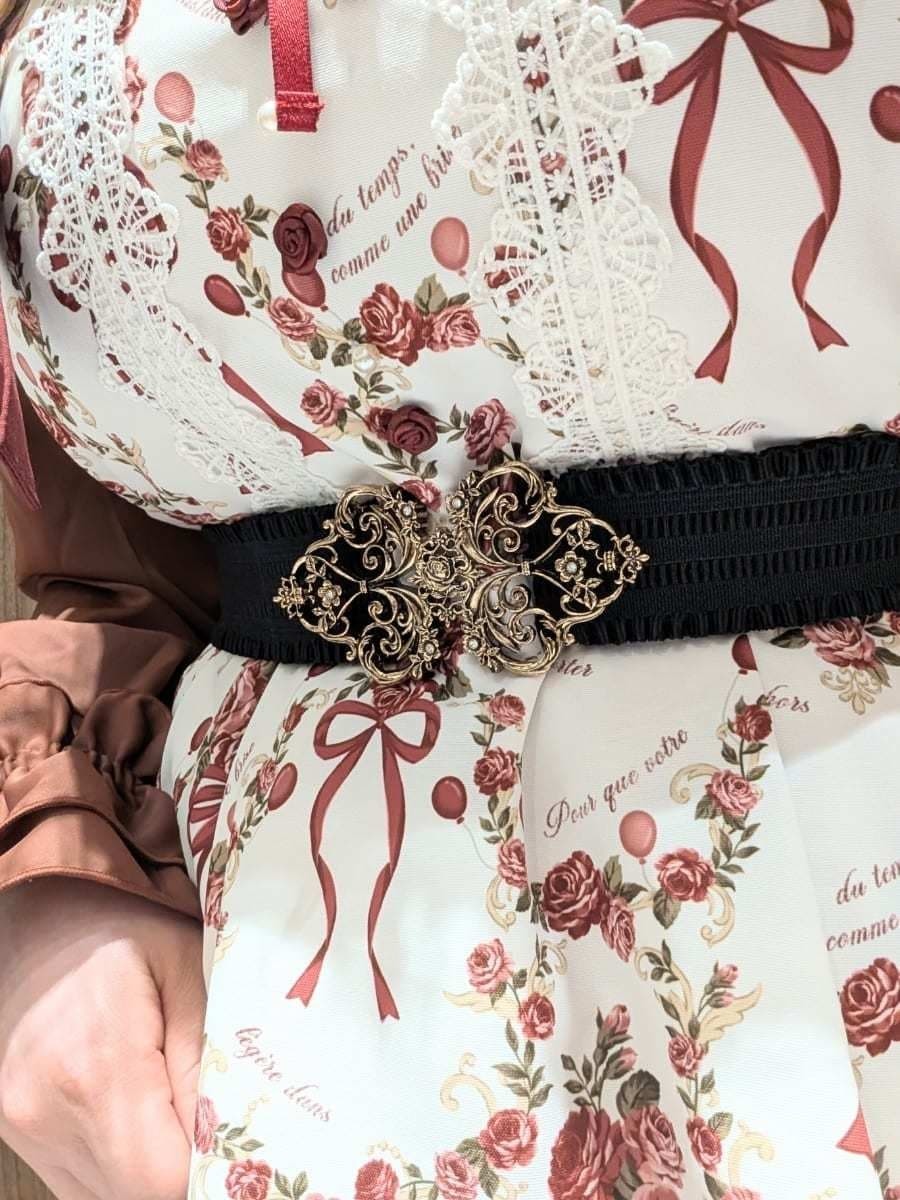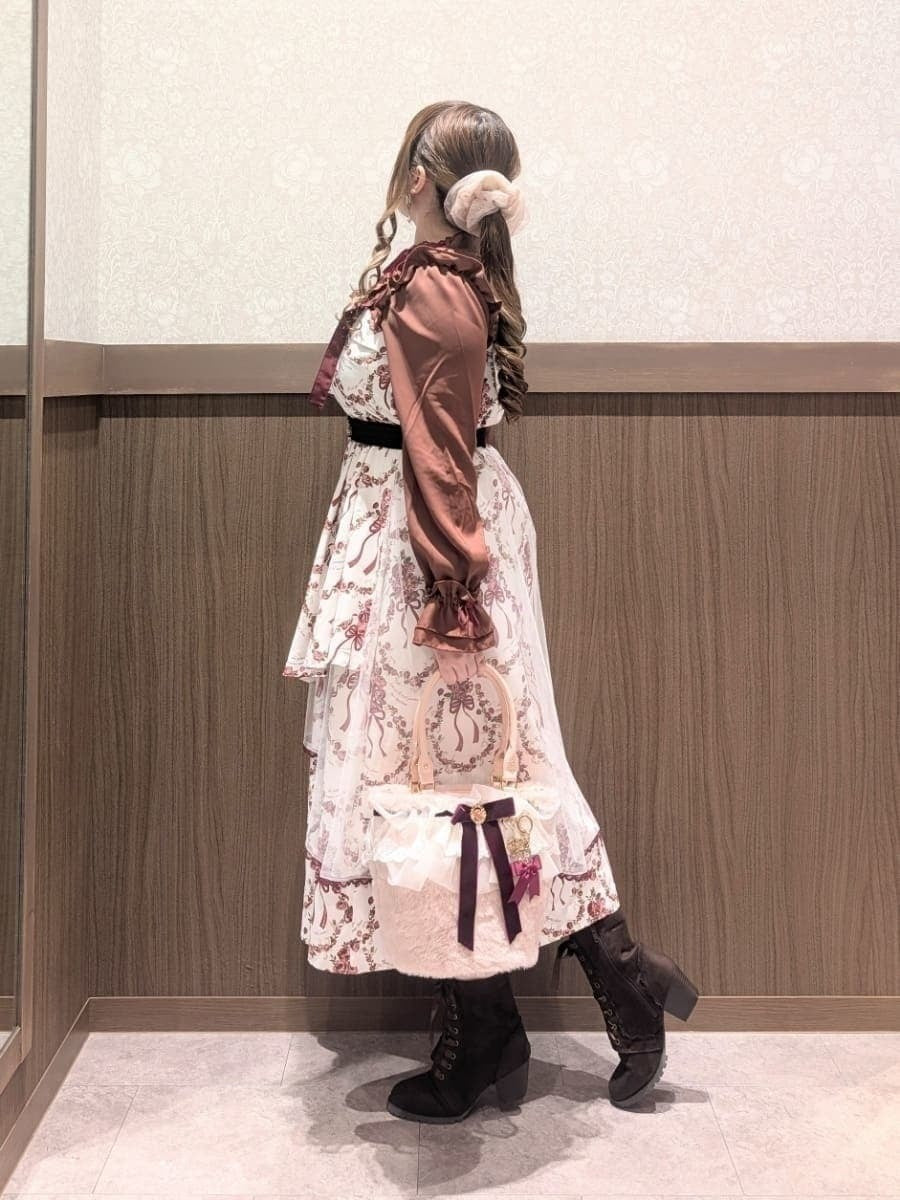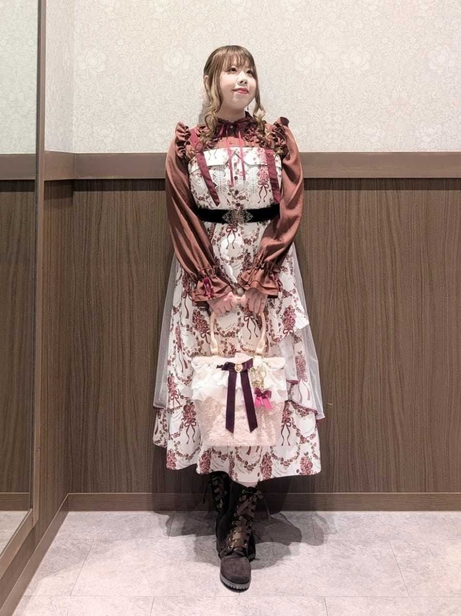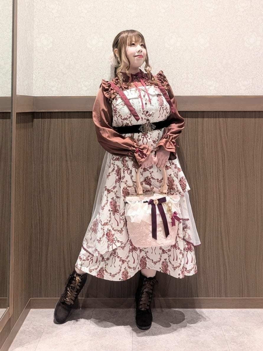 An outing look featuring the Cadeau de Rose Jumper Skirt, an online-exclusive item from our online store anniversary special collection.