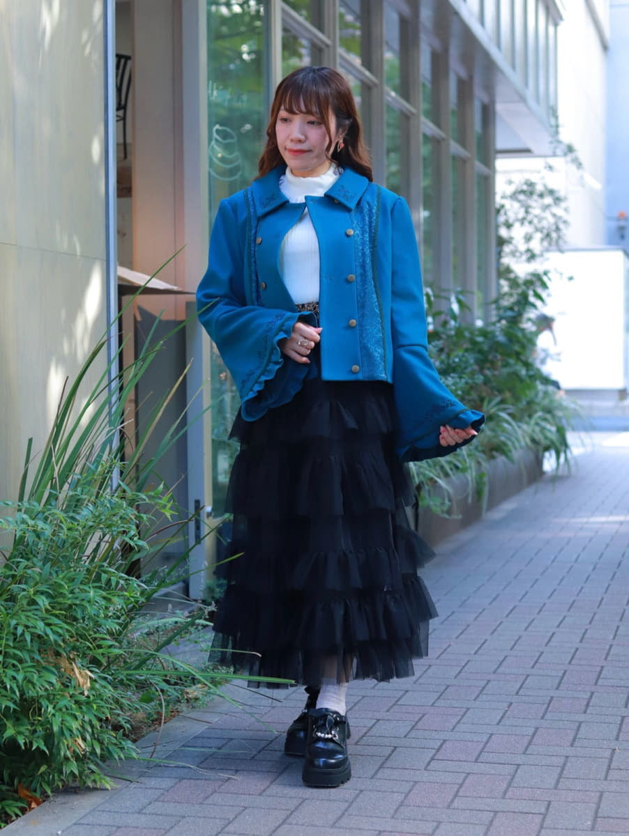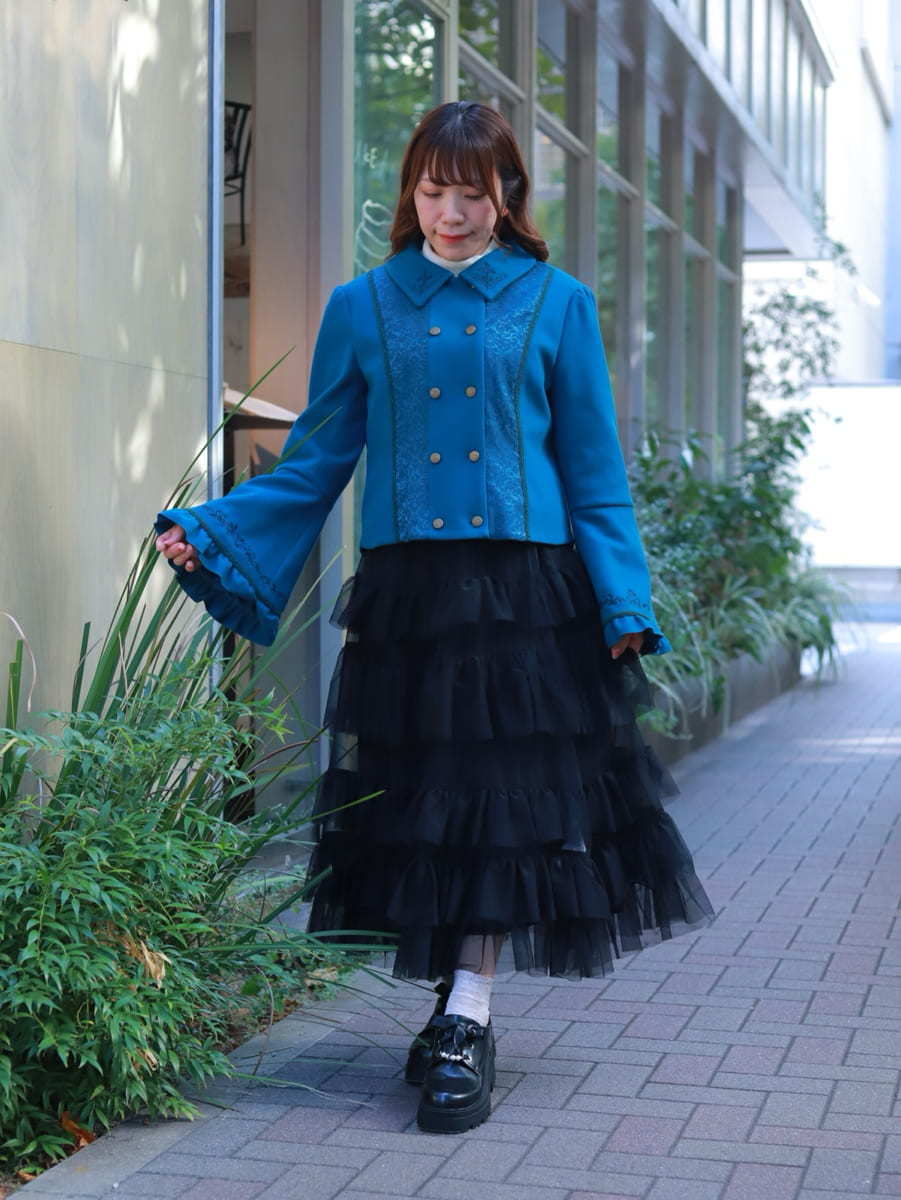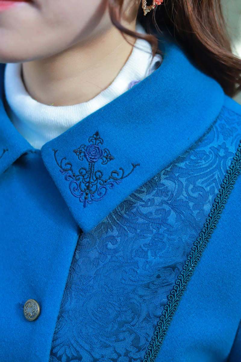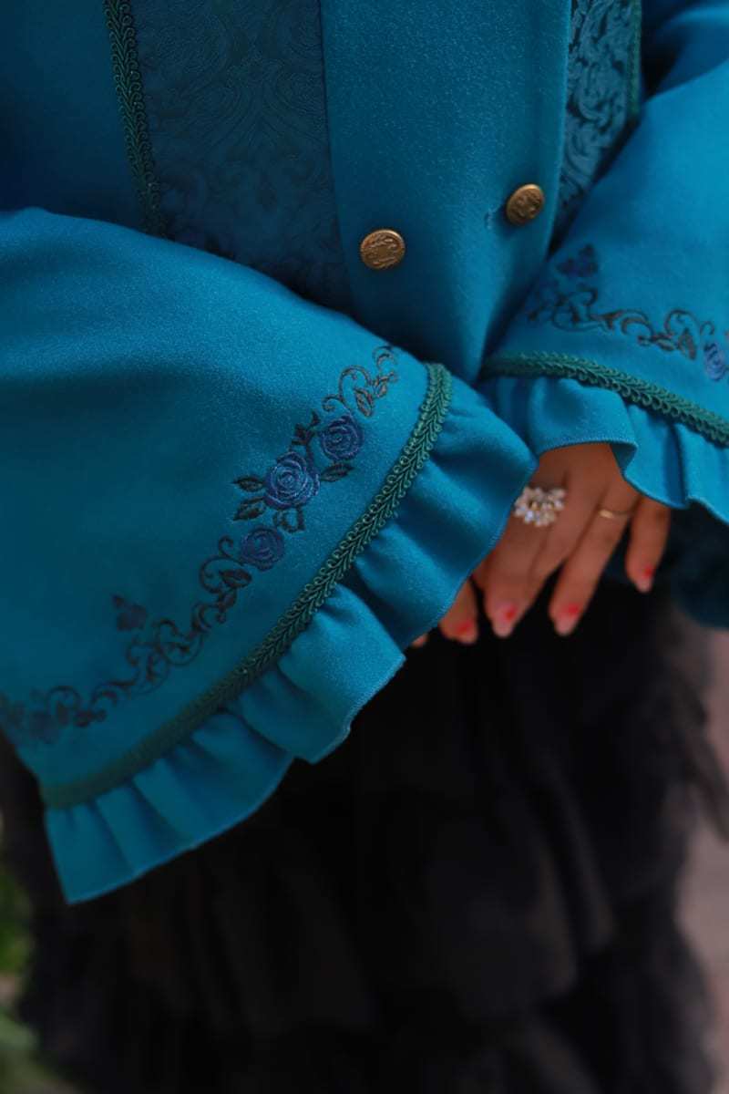 A classical coat🎹 packed with minute details, from the embroidery to the sleeve designs. With a lace-up design on the back, it's beautiful from any angle.