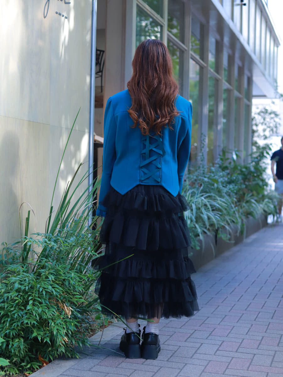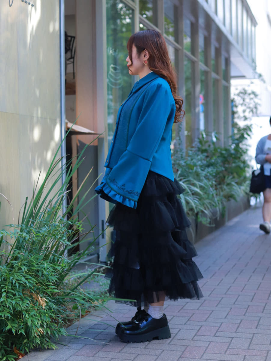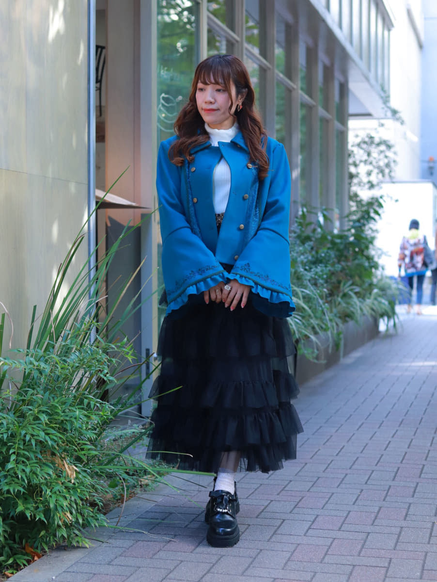 A classical coat🎹 packed with minute details, from the embroidery to the sleeve designs. With a lace-up design on the back, it's beautiful from any angle.