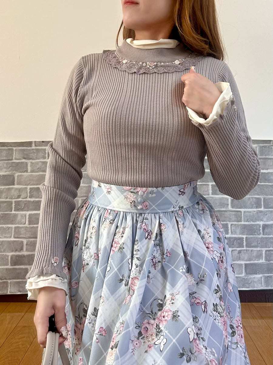 The new greige color of the Rose Bottle Neck Knit keeps the sweetness toned down. It pairs perfectly with spring tones, making it a versatile color to have.