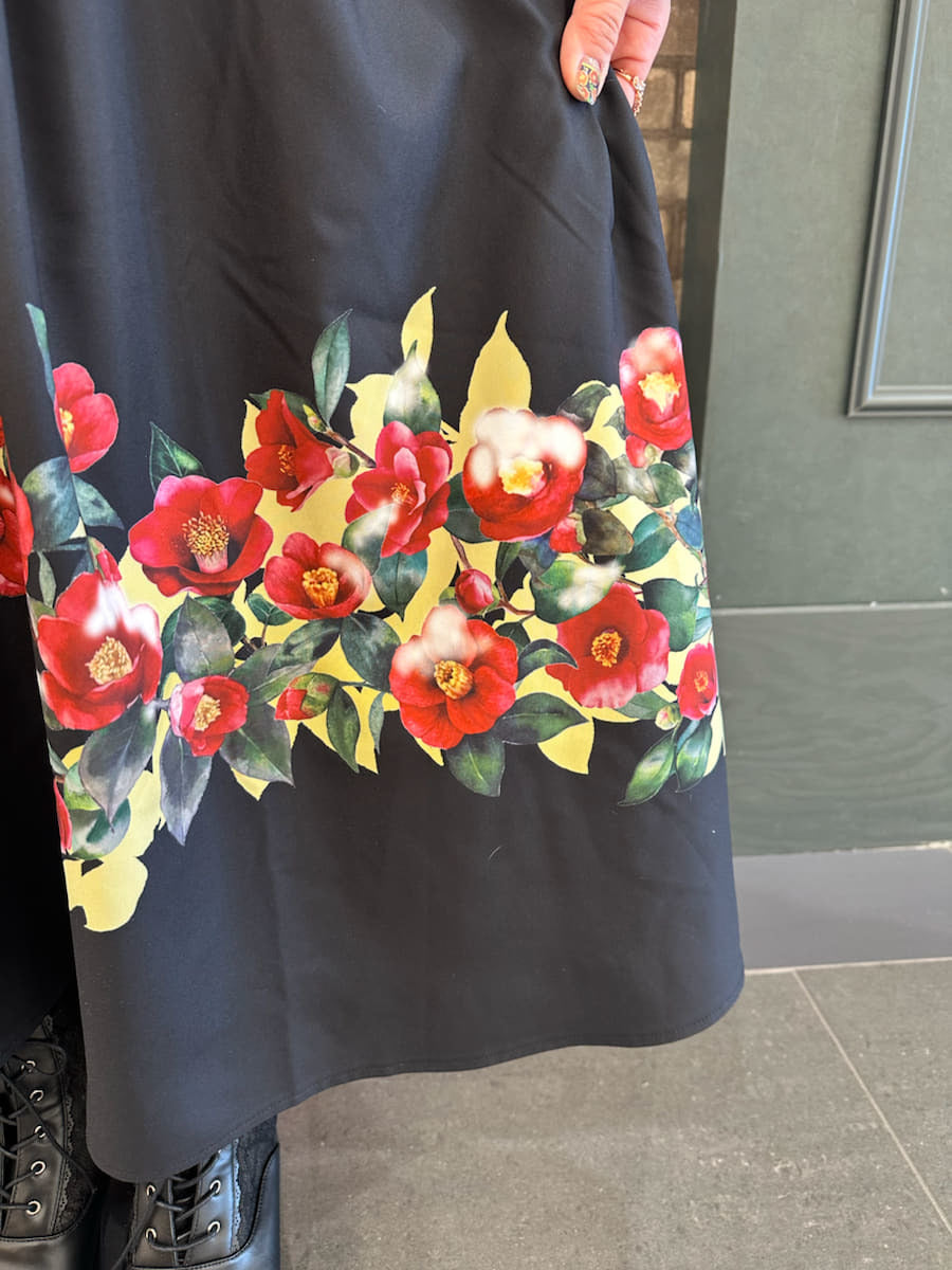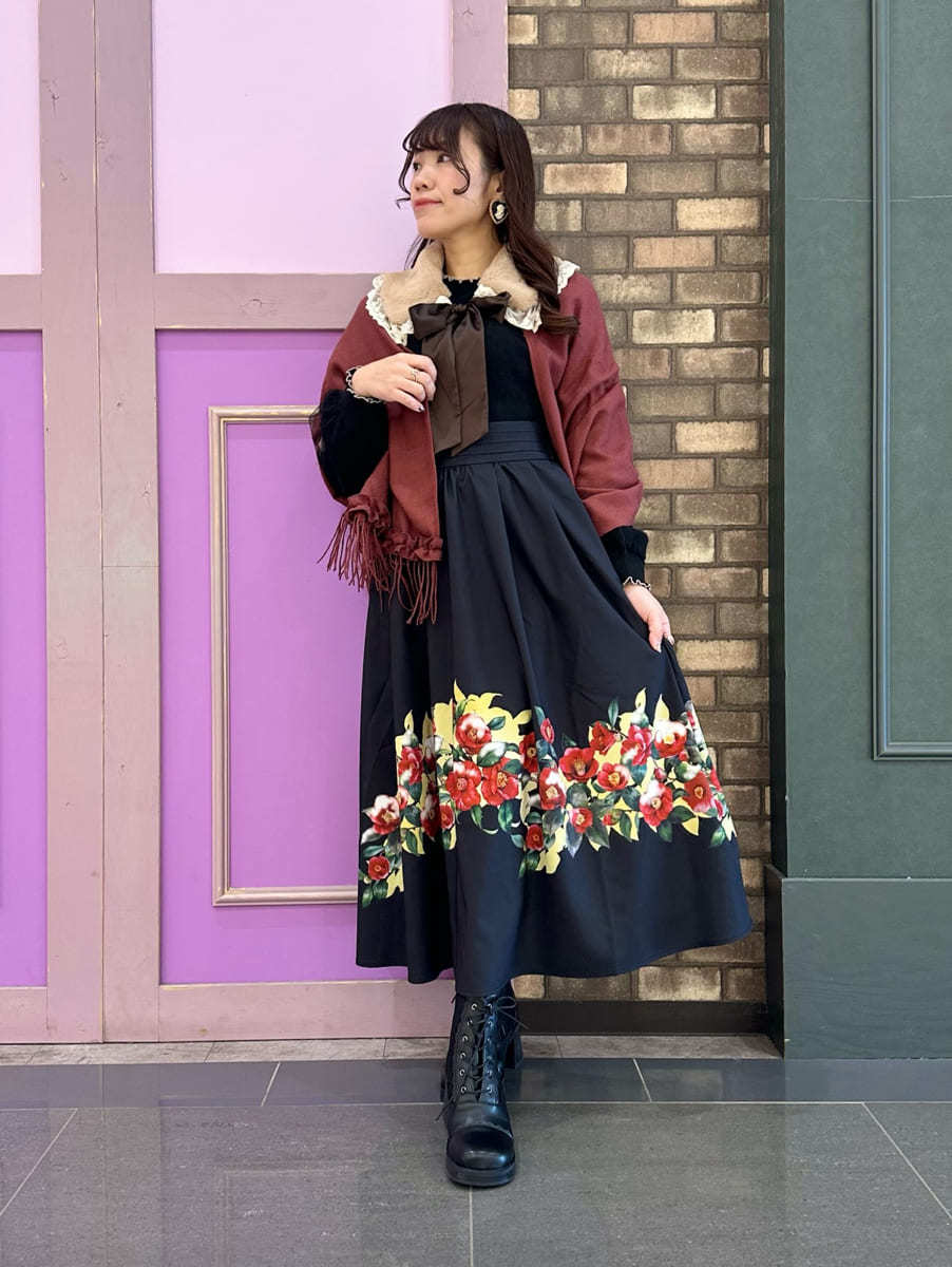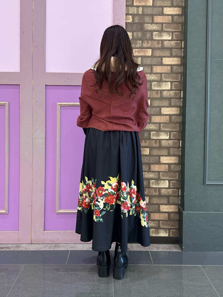 A skirt with the rare camellia pattern ♡ Perfect for those who like the traditional Japanese vibe ◎ The red of the camellia really stands out against the black ✨