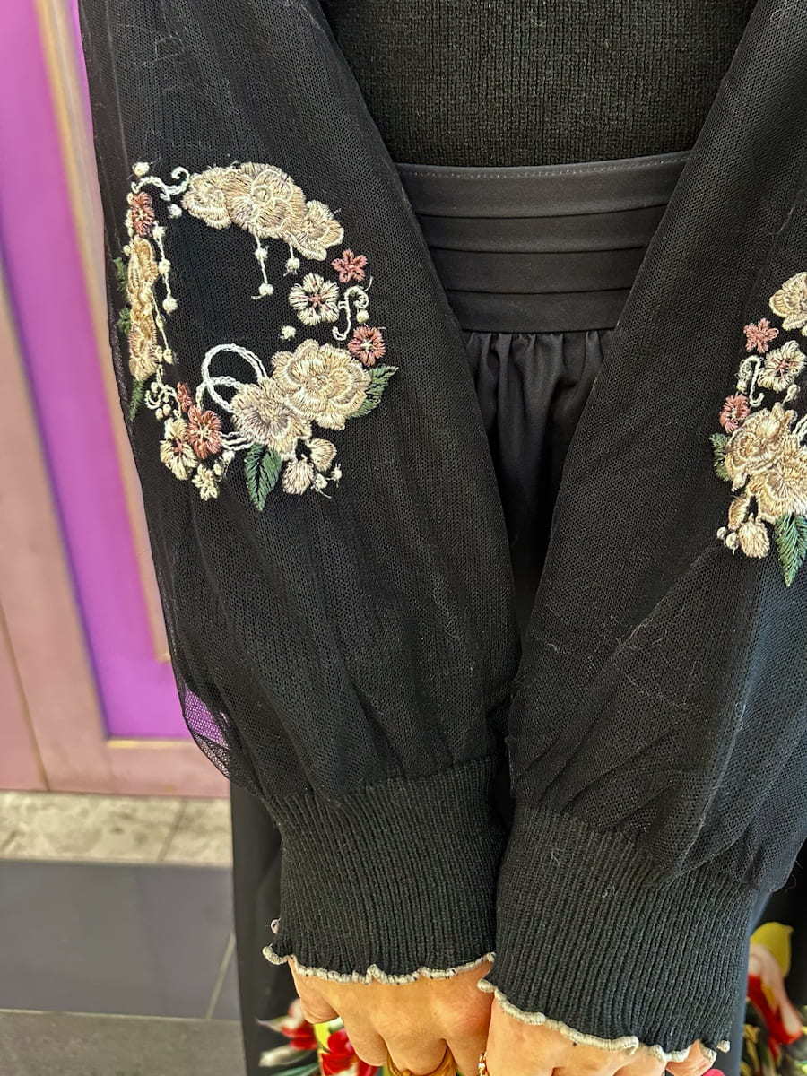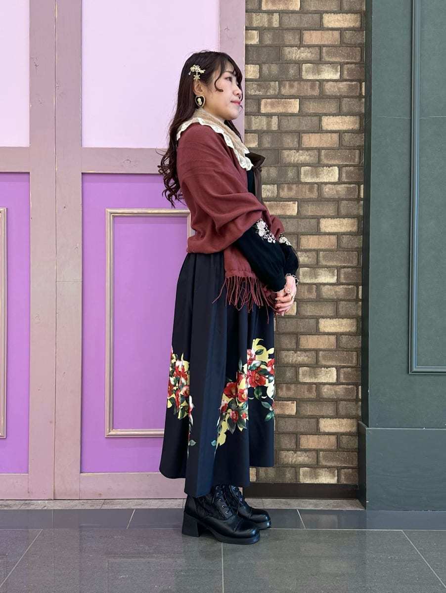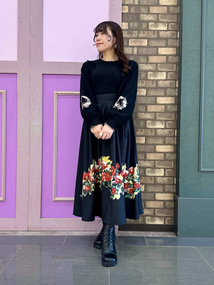 A skirt with the rare camellia pattern ♡ Perfect for those who like the traditional Japanese vibe ◎ The red of the camellia really stands out against the black ✨