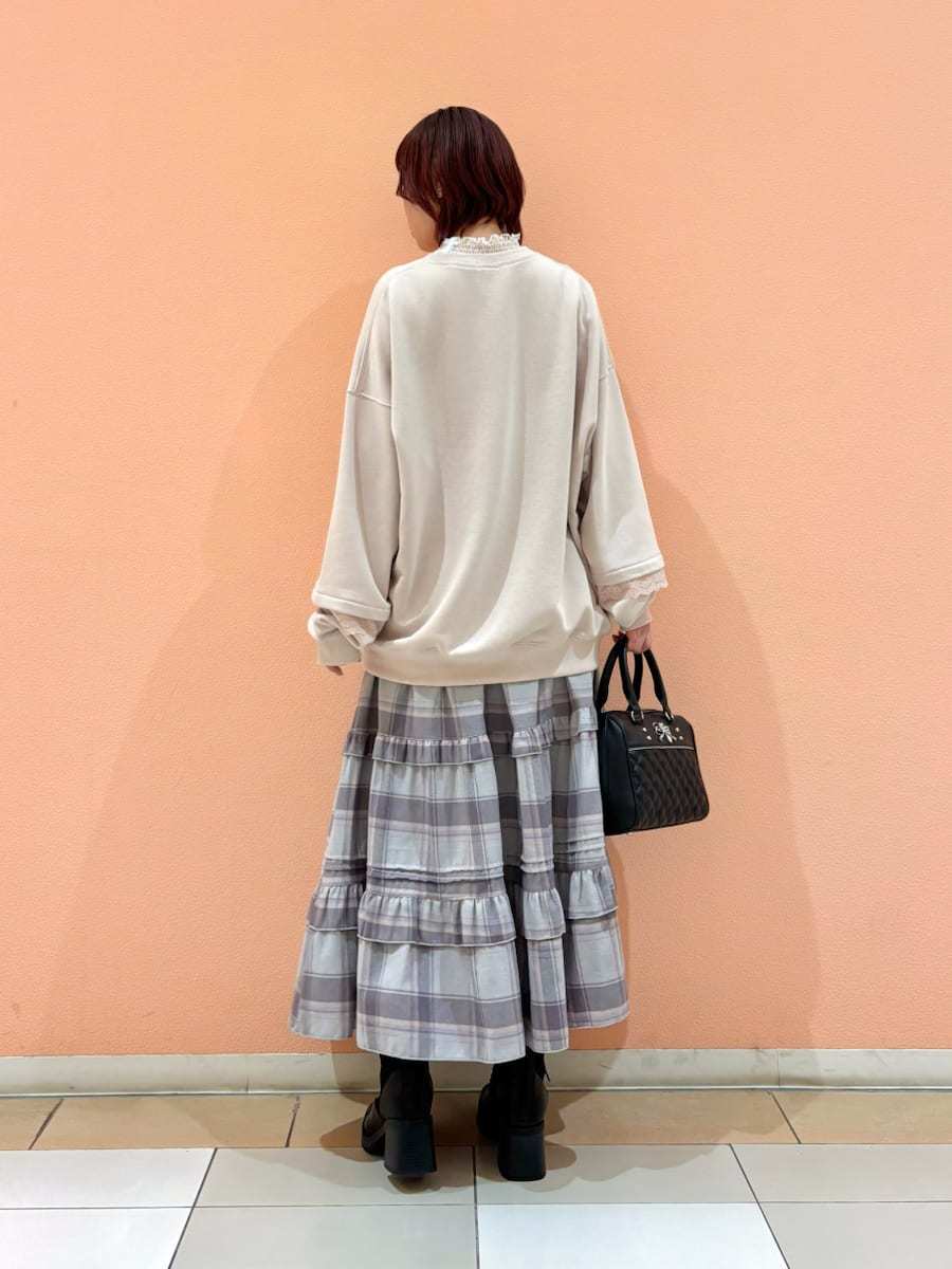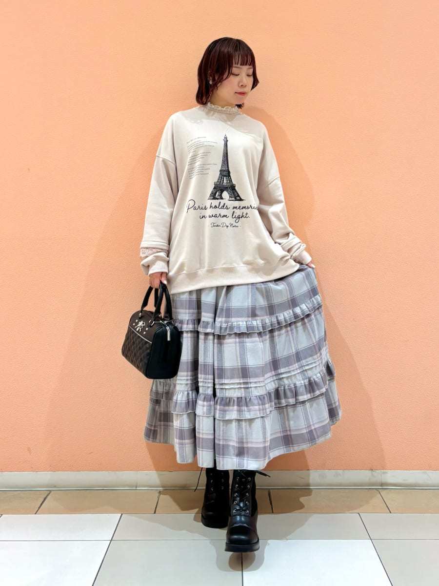 [Top] A comfortable sweatshirt made from sweat material. It's quite oversized and completely covers my butt.◎ The print on the chest and the yoke sleeve design are also cute accents.♡