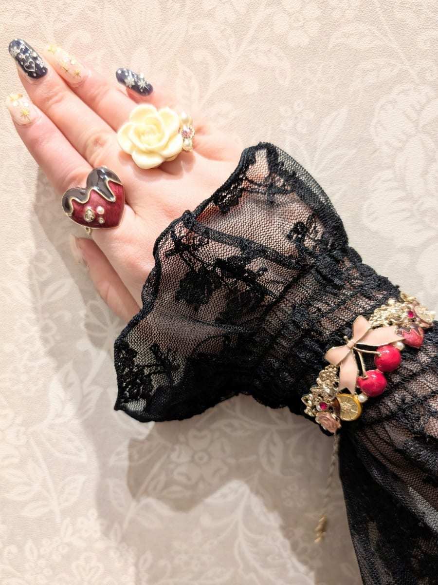 An outing look using the Flower Lace Sheer Inner and the Tulle Ribbon Dress.