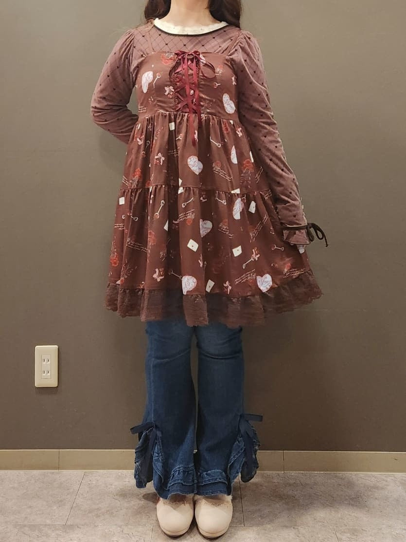 This tunic features an original Valentine's Day-themed print♡ The adjustable shoulder straps allow you to adjust the length to your liking! It's also cute as a mini dress👌