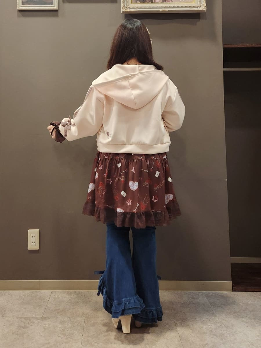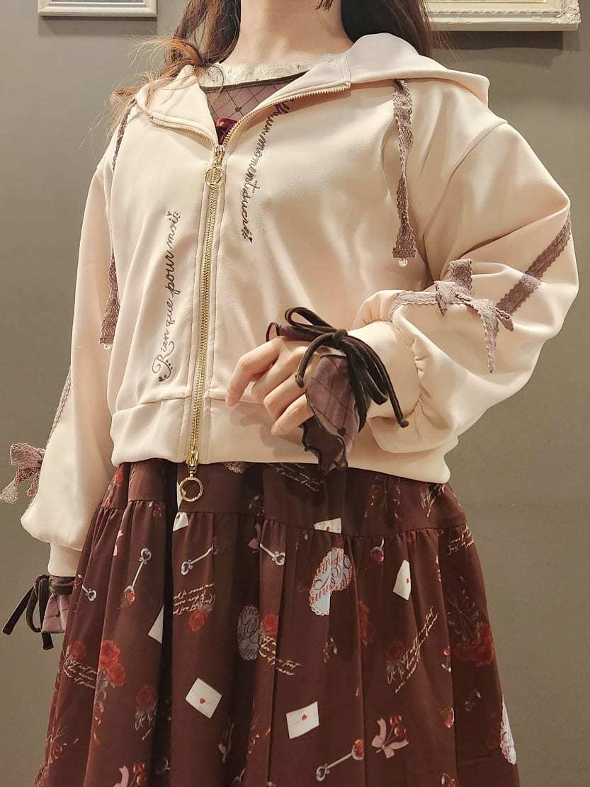 The outer layer is a double knit hoodie inspired by chocolate! The pink color is strawberry chocolate🎀 with embroidery for a one-point detail ✉