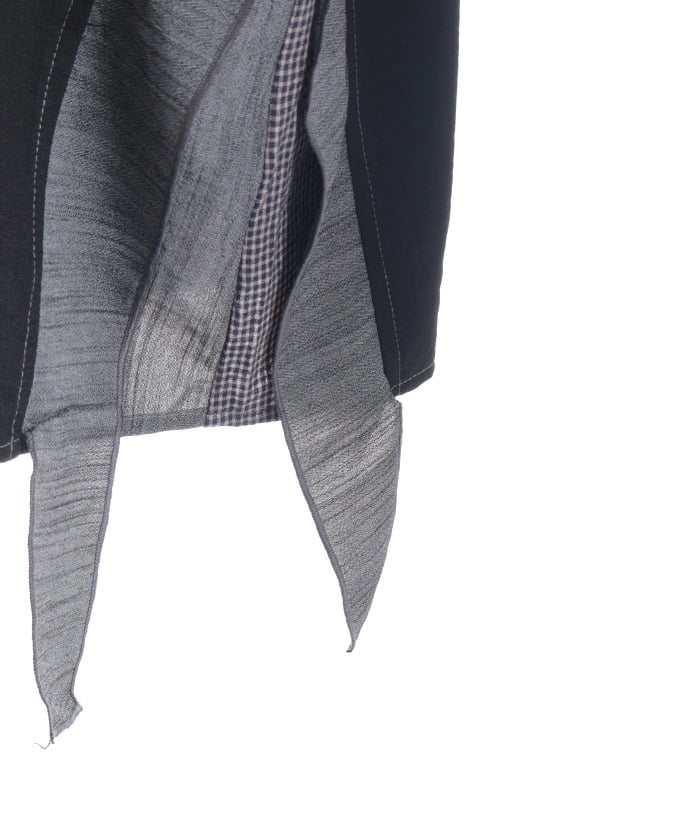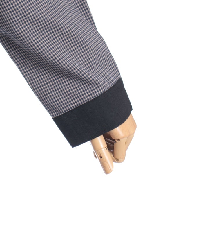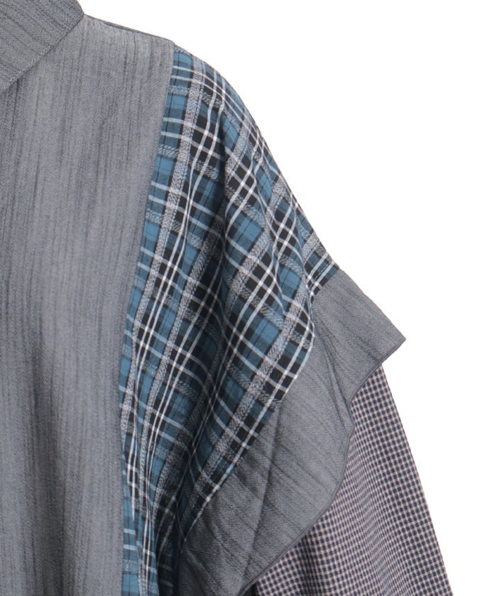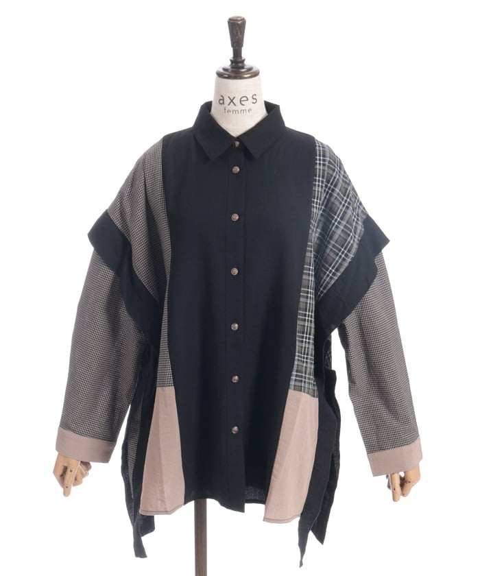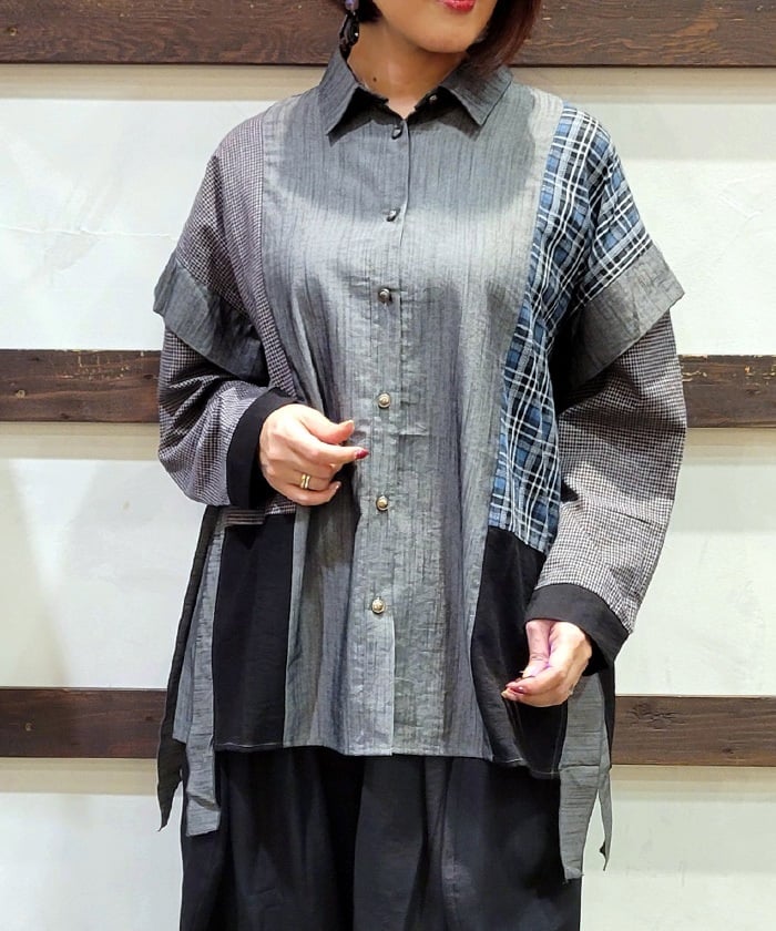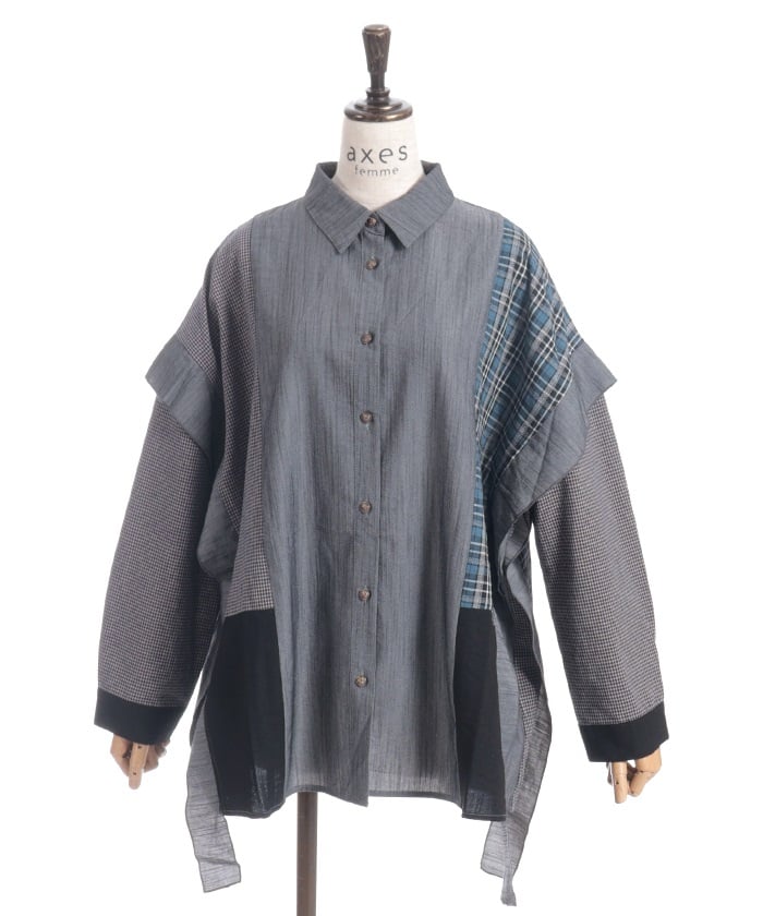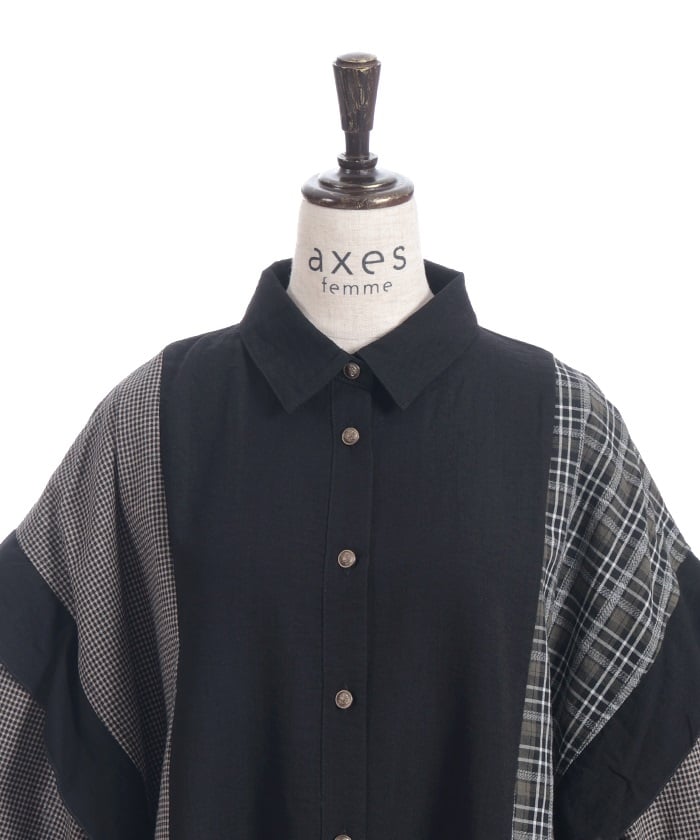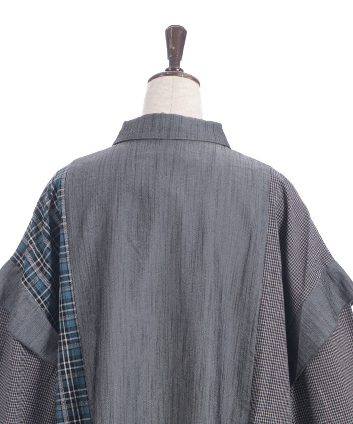 This shirt features an eye-catching patchwork design that combines multiple check patterns.