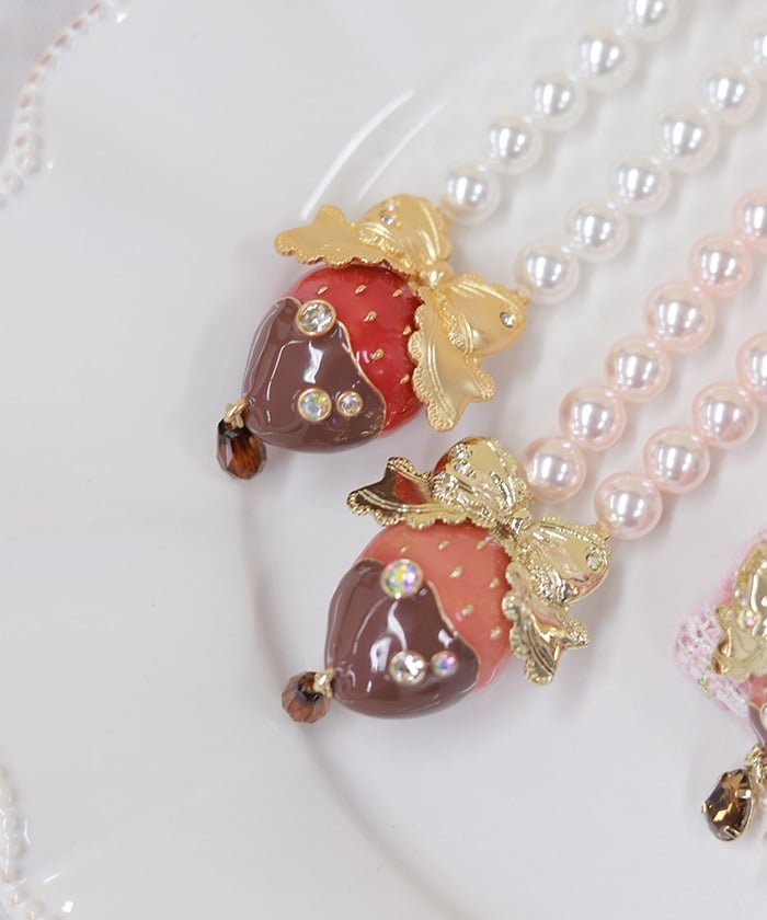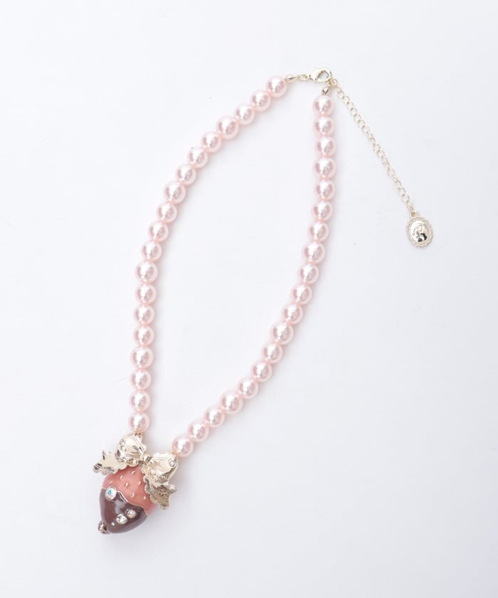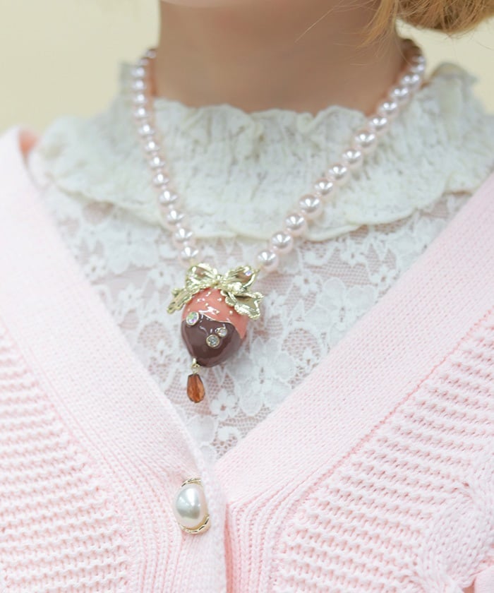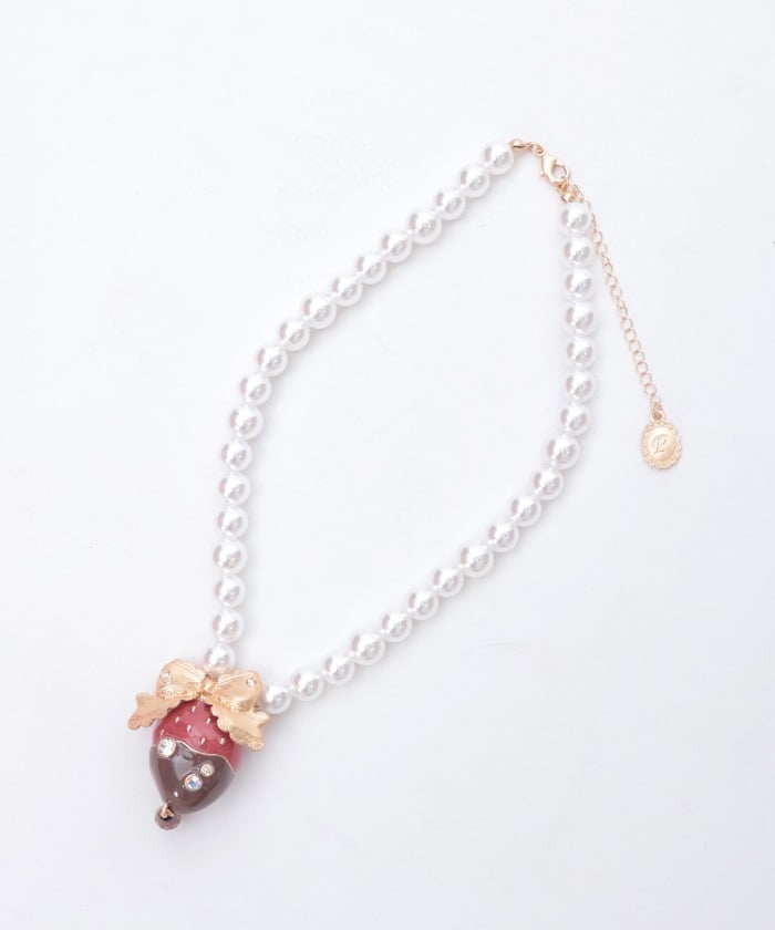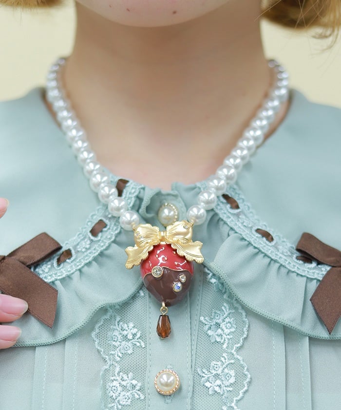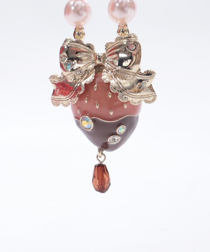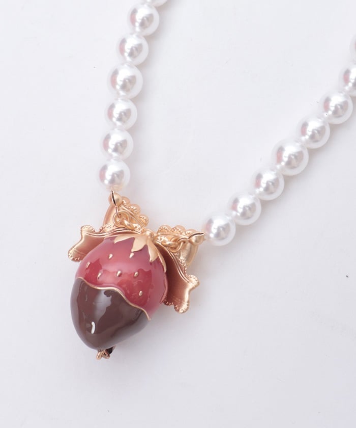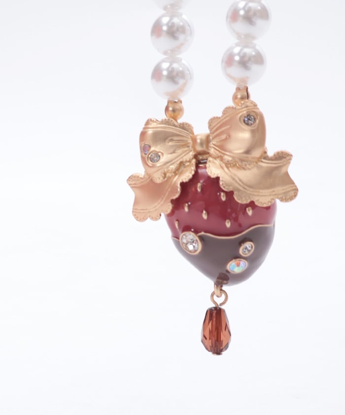 A necklace featuring an original motif inspired by strawberry chocolate fondue.