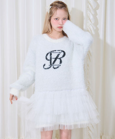 Logo Jacquard Tulle Knit Top