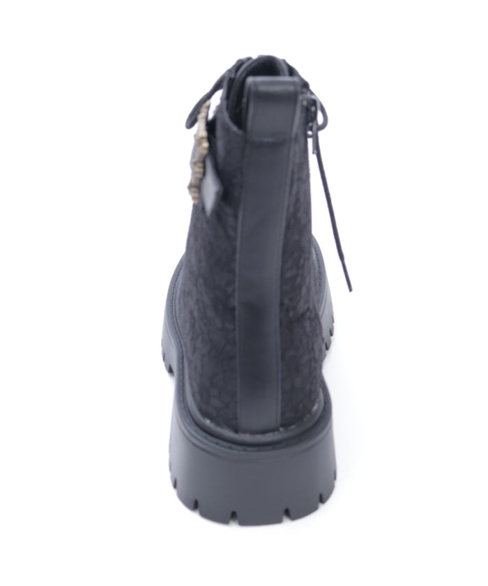 Layered with delicate lace fabric, these boots offer a casual yet subtly feminine design.