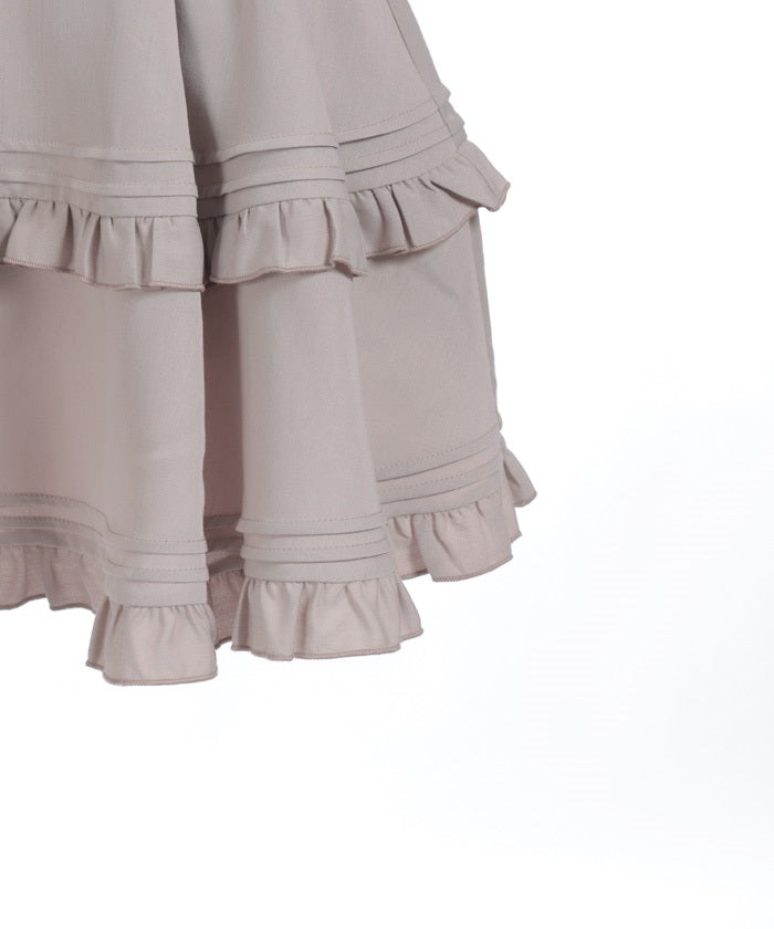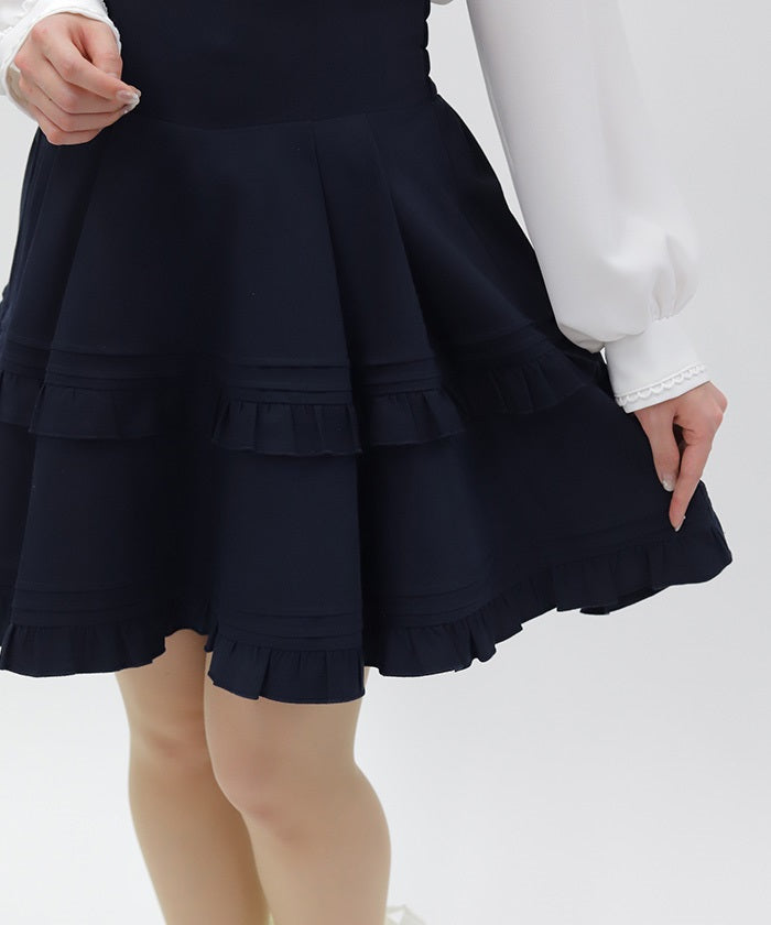 The pintucks and ruffles create a preppy design.