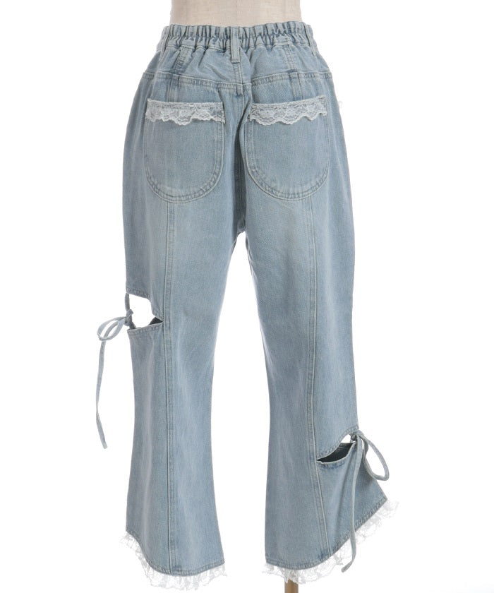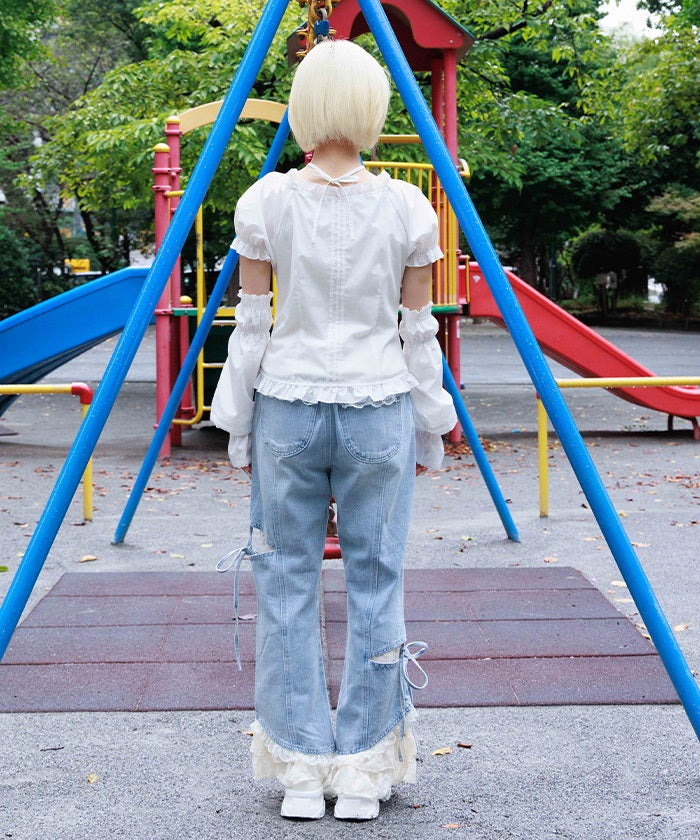 Pair these pants with voluminous shoes like sneakers, clogs, or sports sandals. Pair them with a loose-fitting T-shirt or hoodie for a street-inspired look, or with a blouse or girly top for a sweet and spicy Mori Girl-inspired mix. We highly recommend layering it with Lace Pants with Petticoat underneath.
