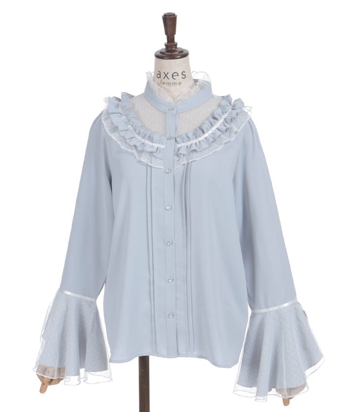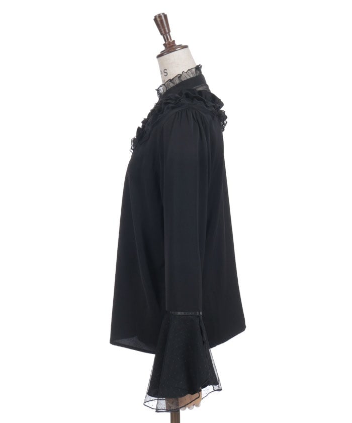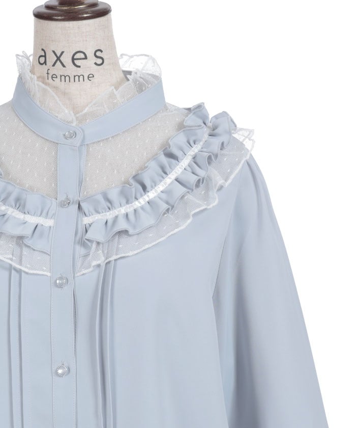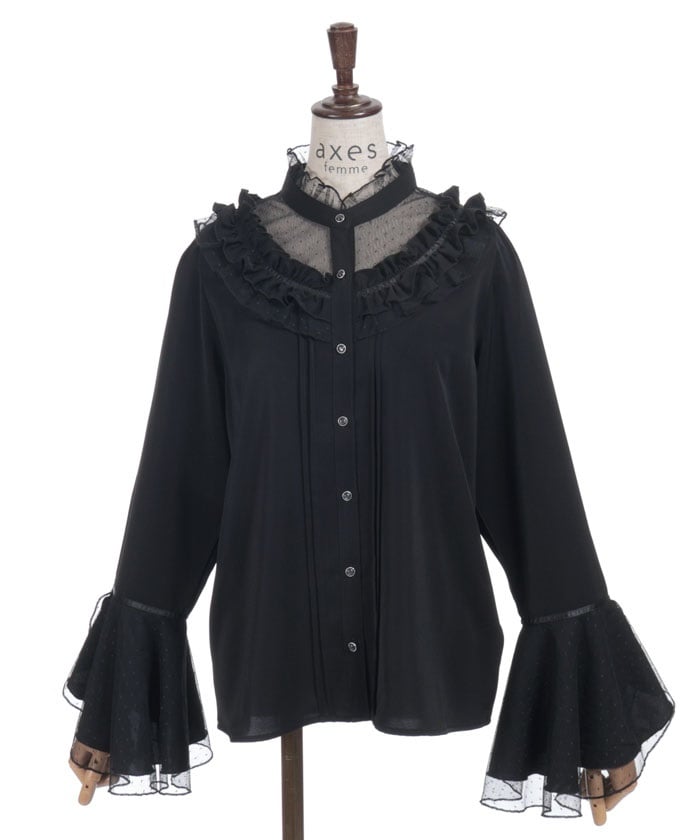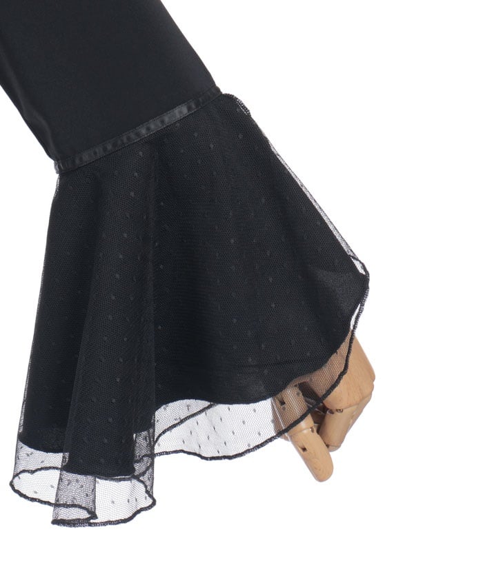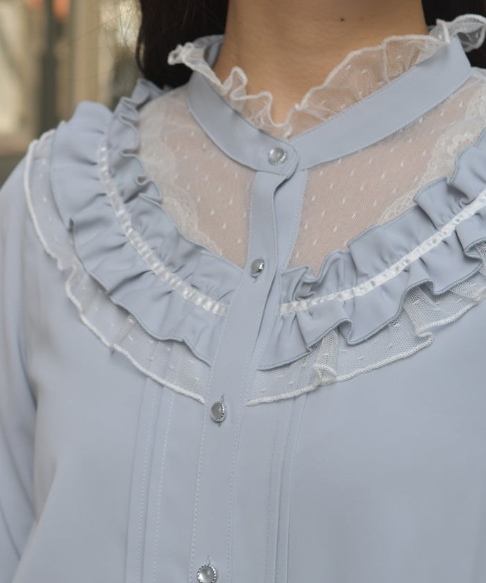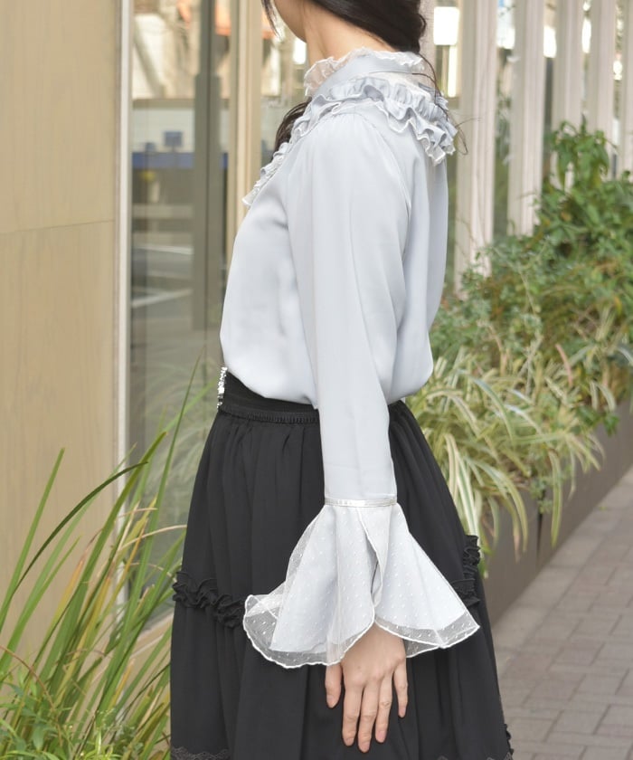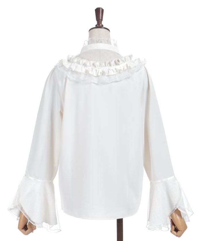 This feminine princess-sleeve blouse features overlapping dotted tulle.