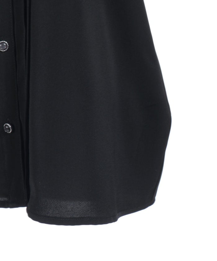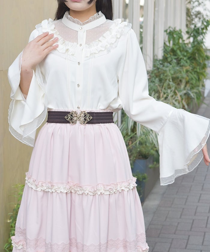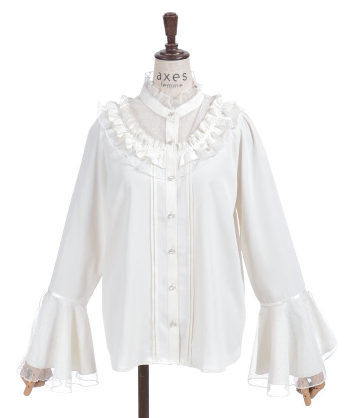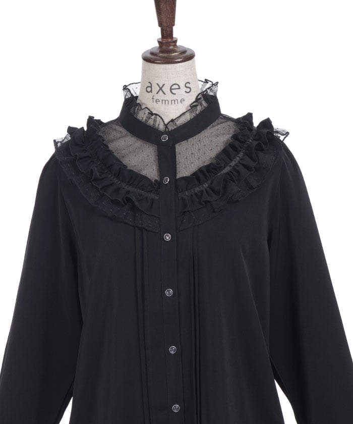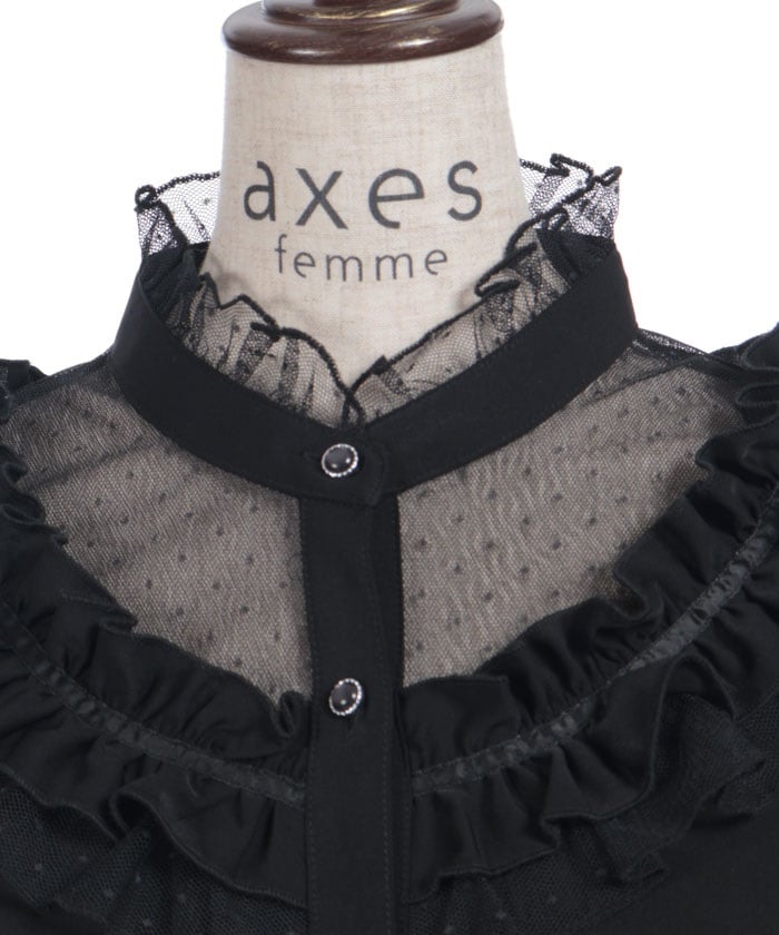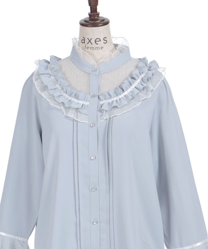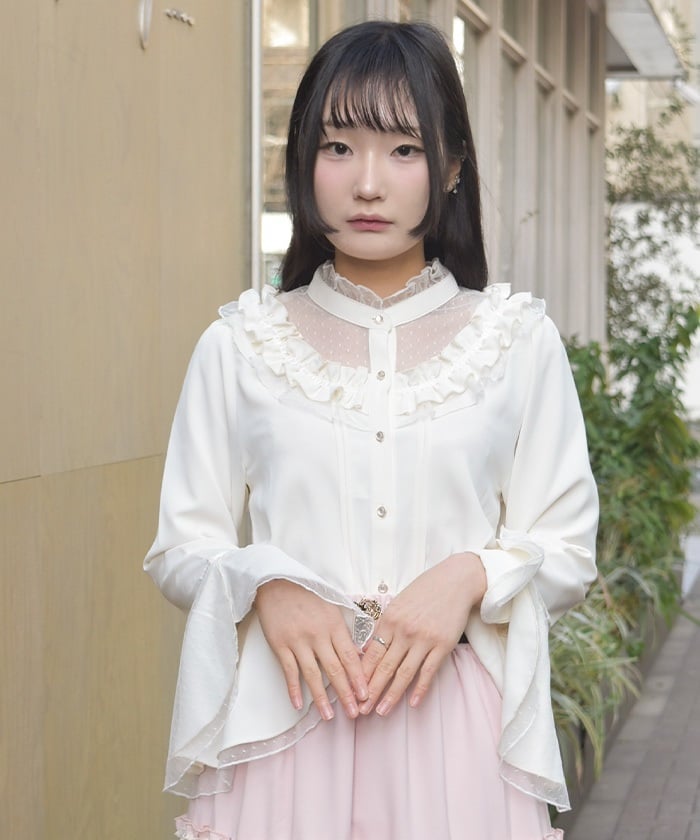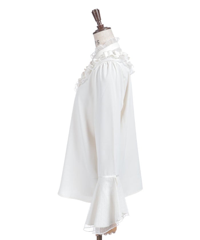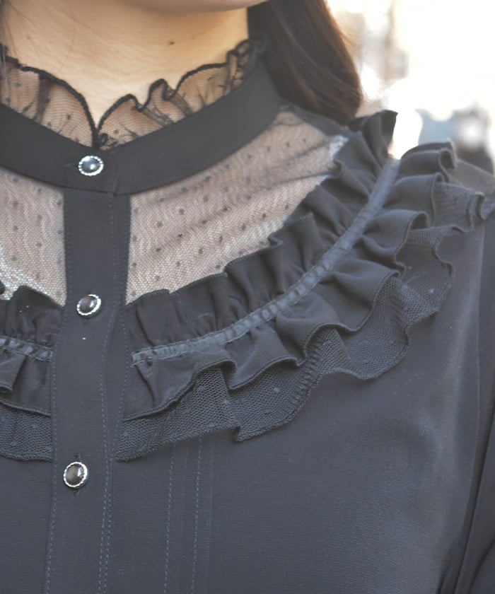 This feminine princess-sleeve blouse features overlapping dotted tulle.