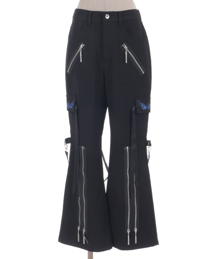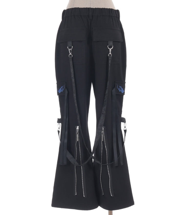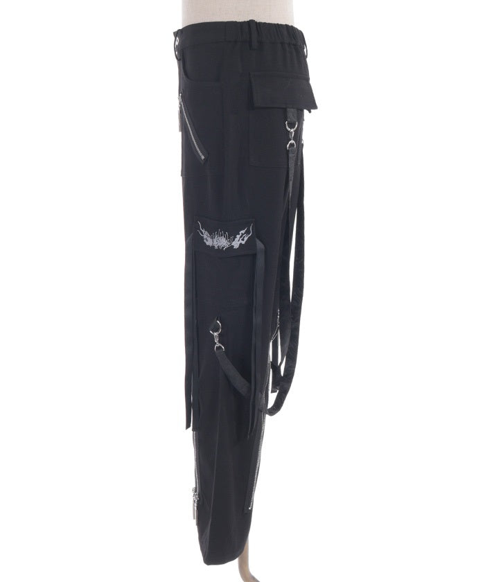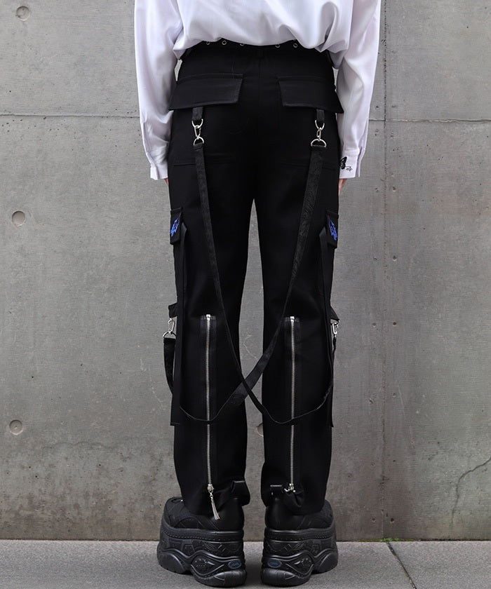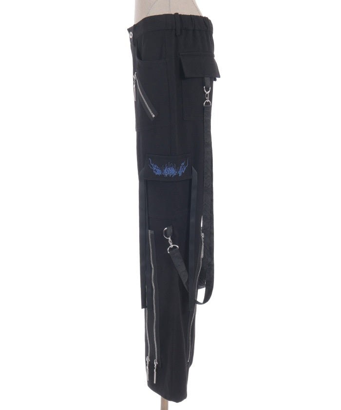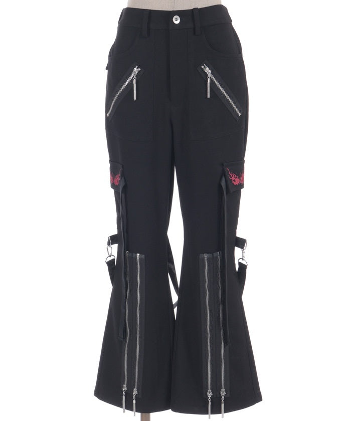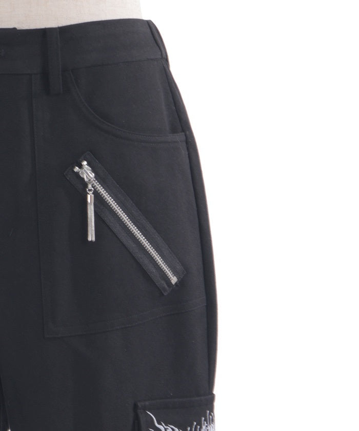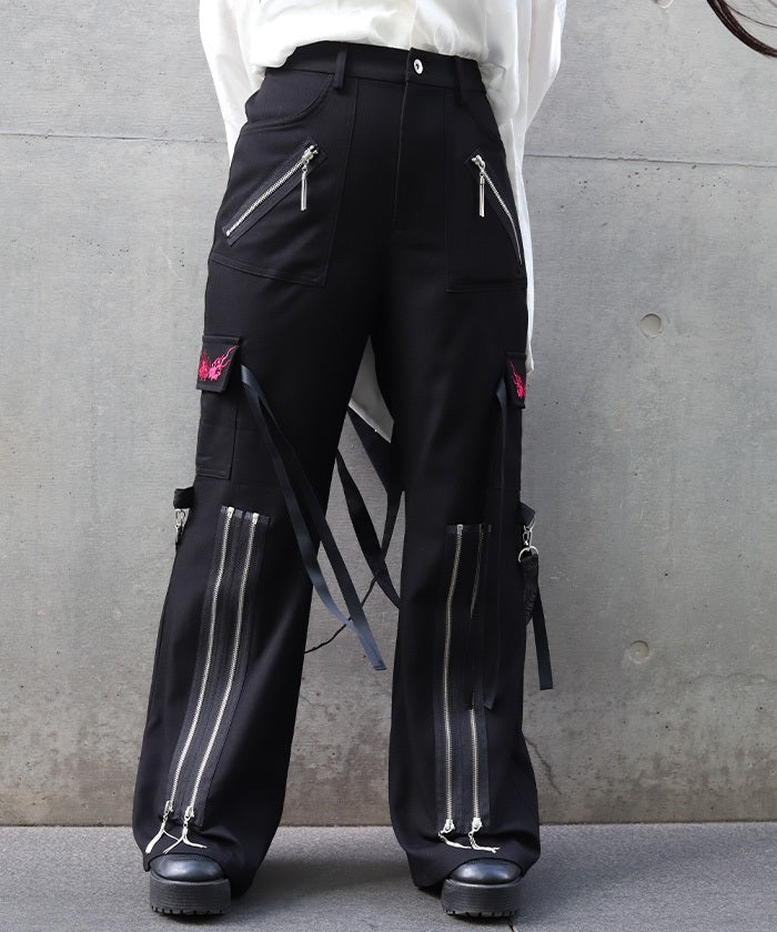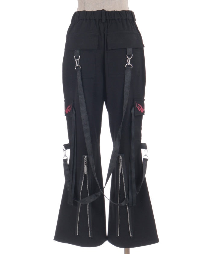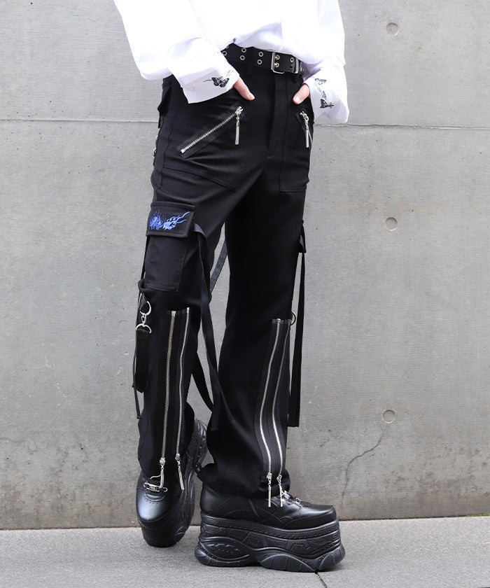 The cargo pockets feature embroidered red spider lilies and will-o'-the-wisp designs on the flaps, with double straps on both ends.