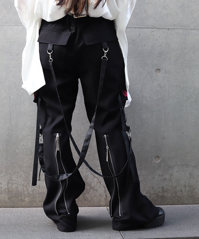 A pair of bondage pants that combine traditional Japanese and punk aesthetics.