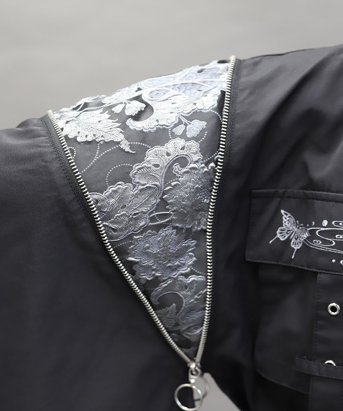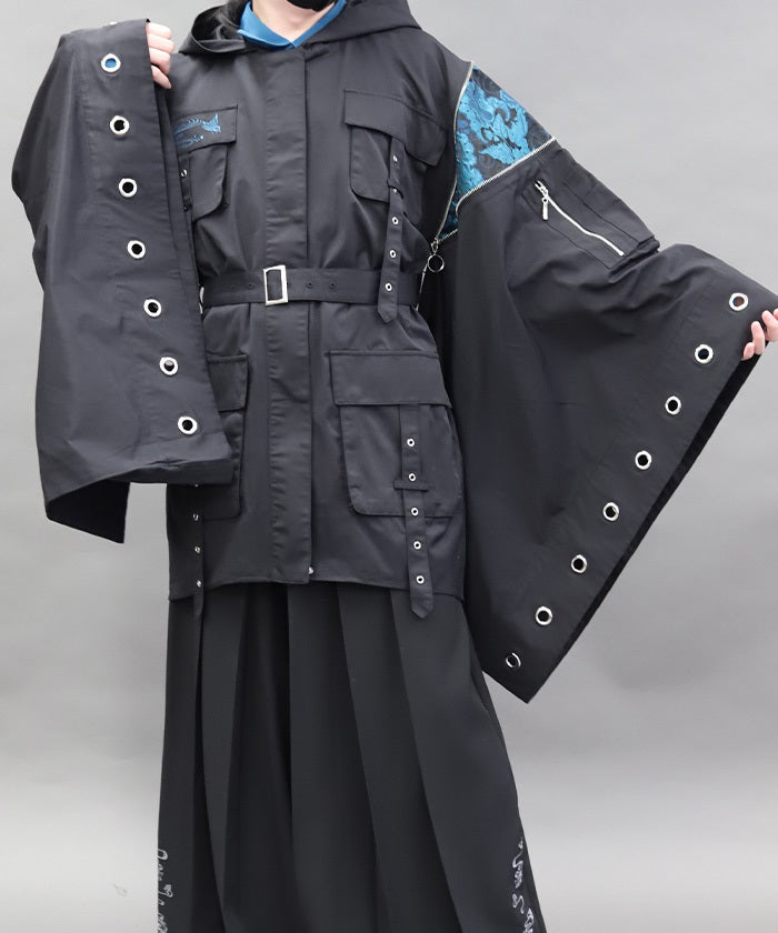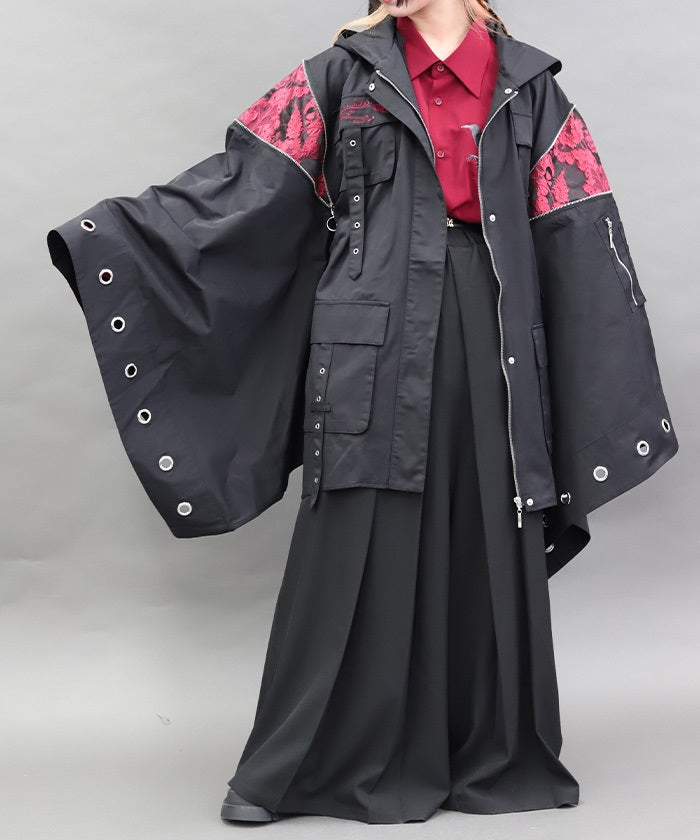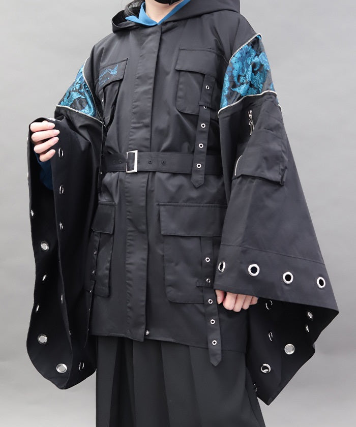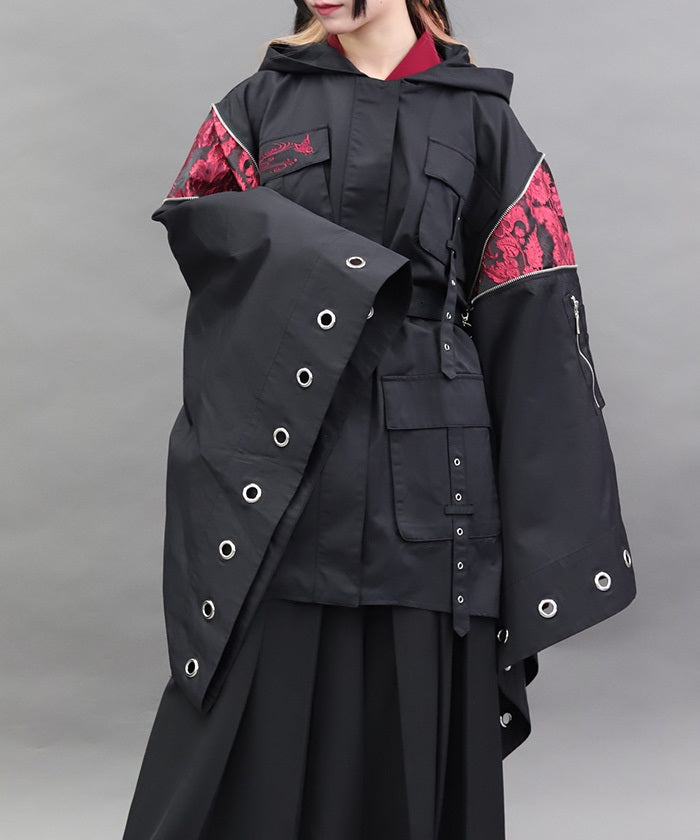 Combined with the arabesque jacquard fabric on the shoulders, it exudes a Japanese flair.