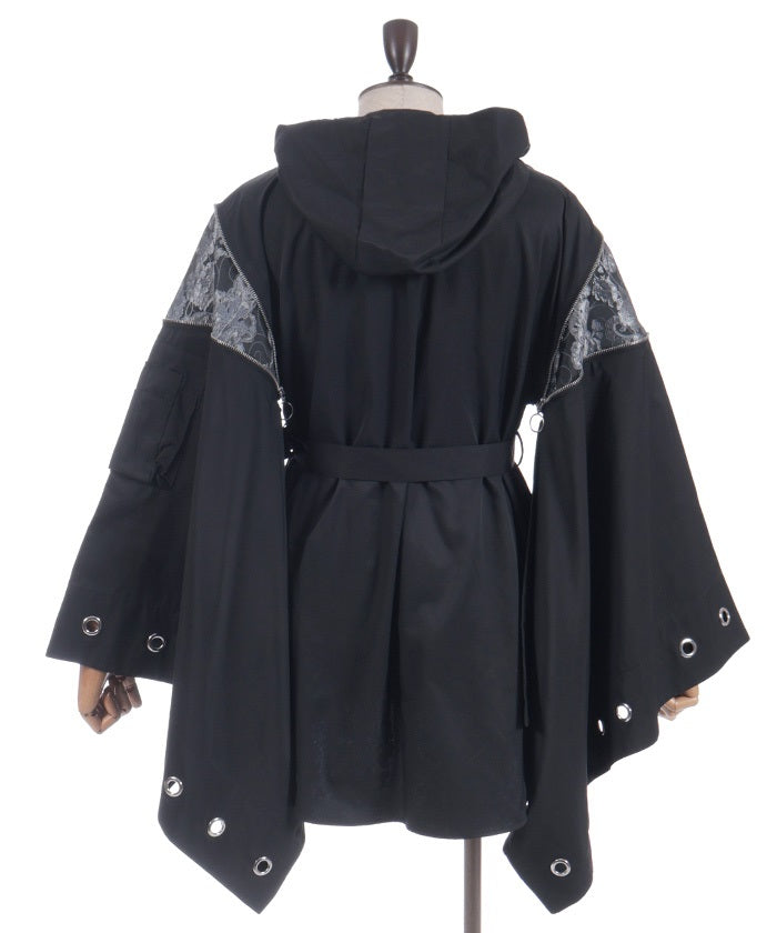 This spring coat blends Japanese and Western styles, combining a military design with traditional Japanese sleeves.