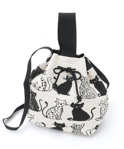 Overall Pattern Knit Drawstring Bag