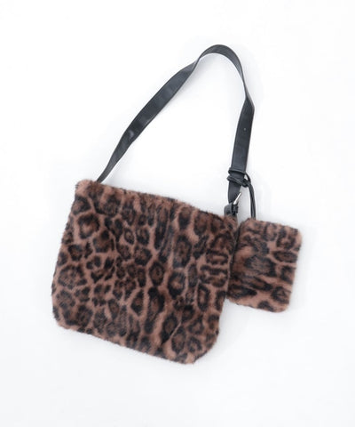 Leopard Pattern Fur Bag with Pouch
