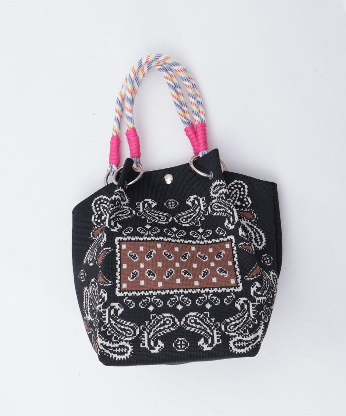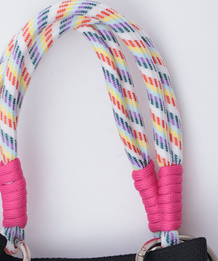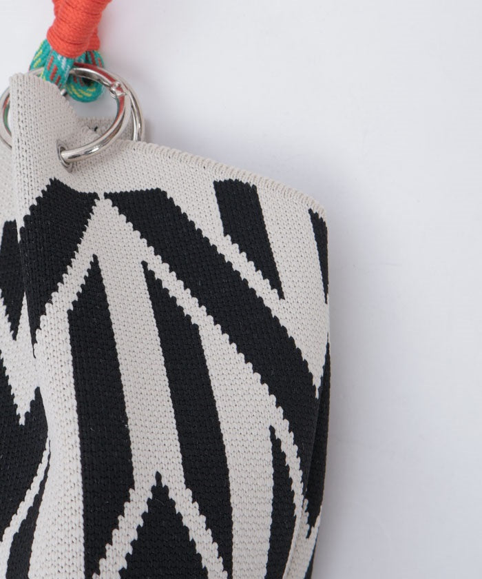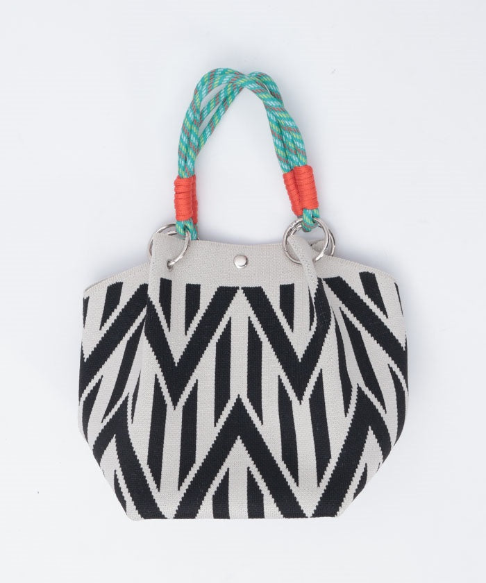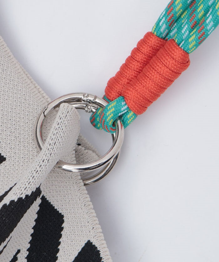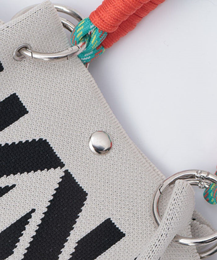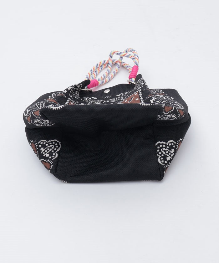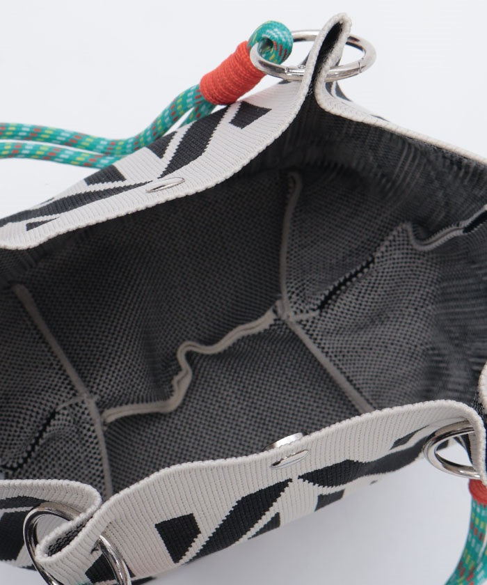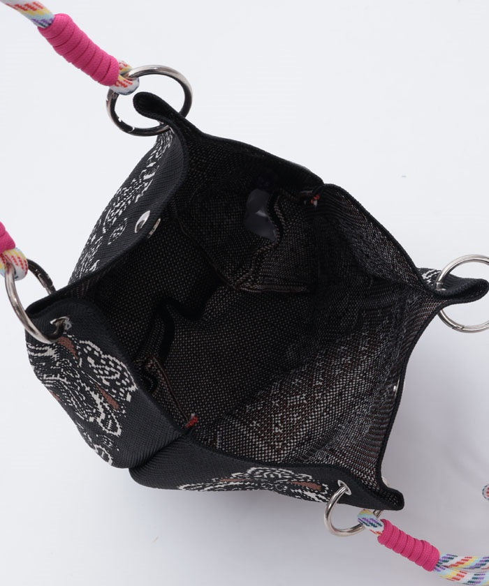 The eye-catching all-over print design is accented by the rope-like handle. The color-coordinated handle adds a touch of style to the simple form, creating a unique look. The drawstring design also makes it practical, allowing you to quickly hide the contents.