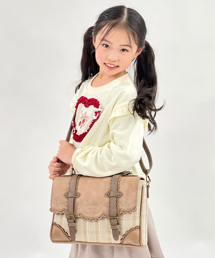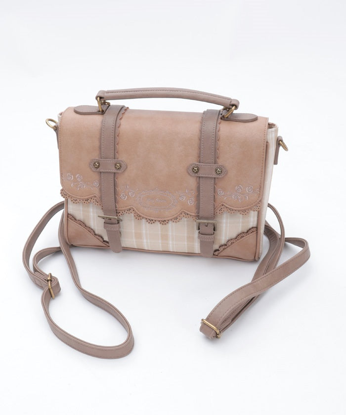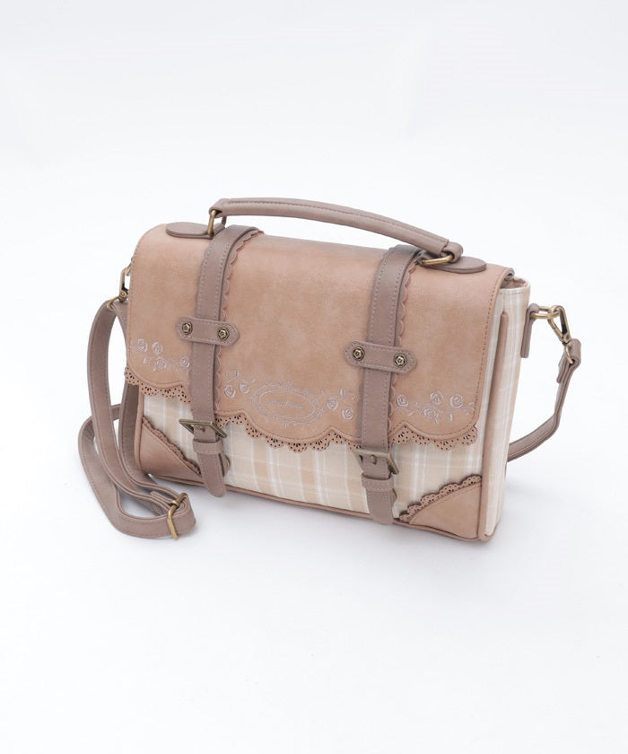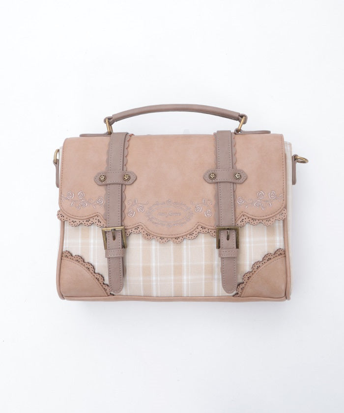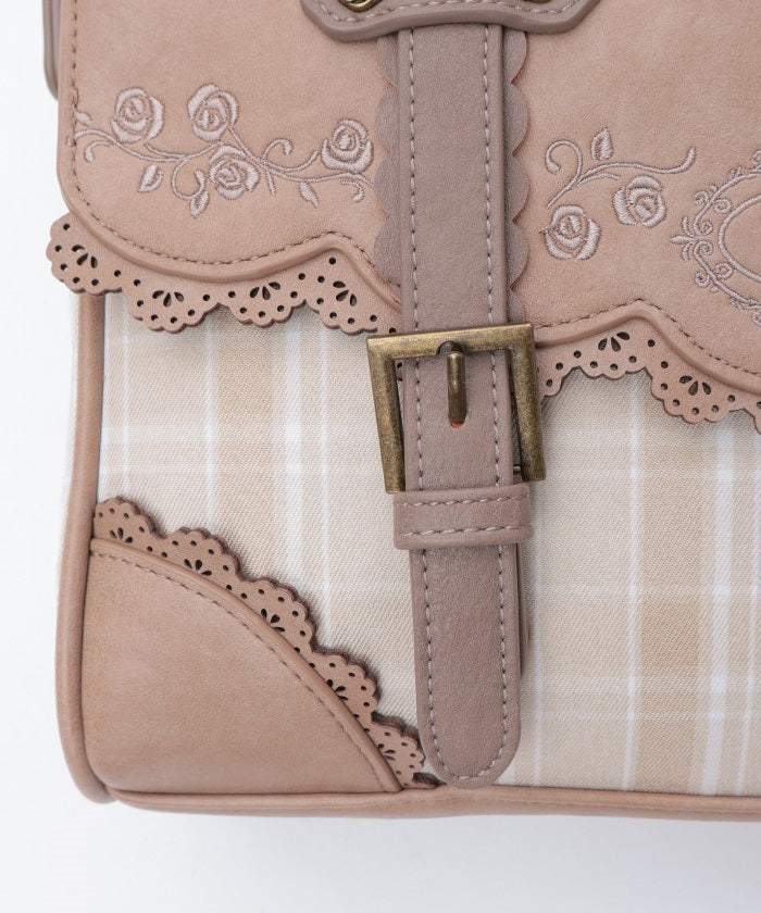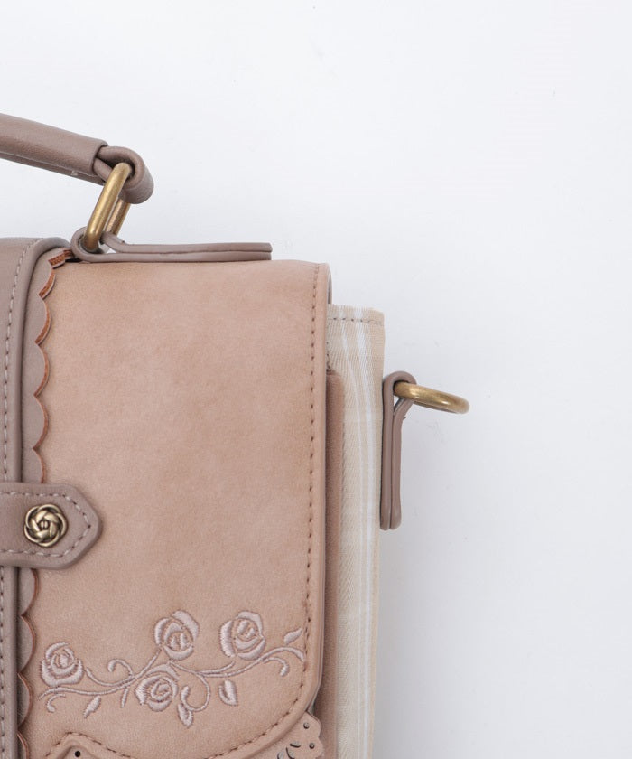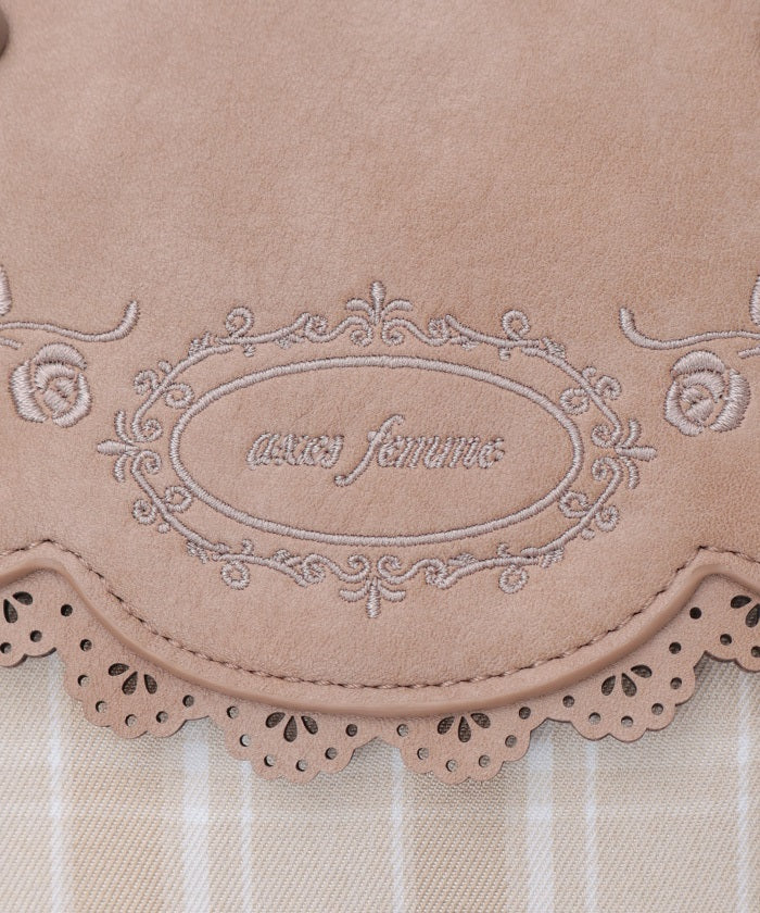 The flap is also scalloped and features a gorgeous embroidered rose motif.