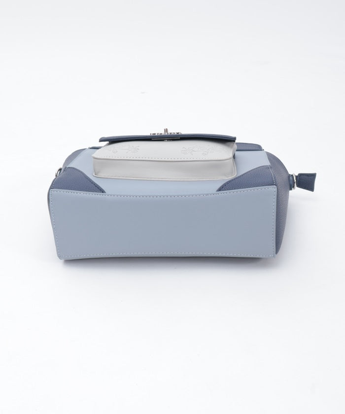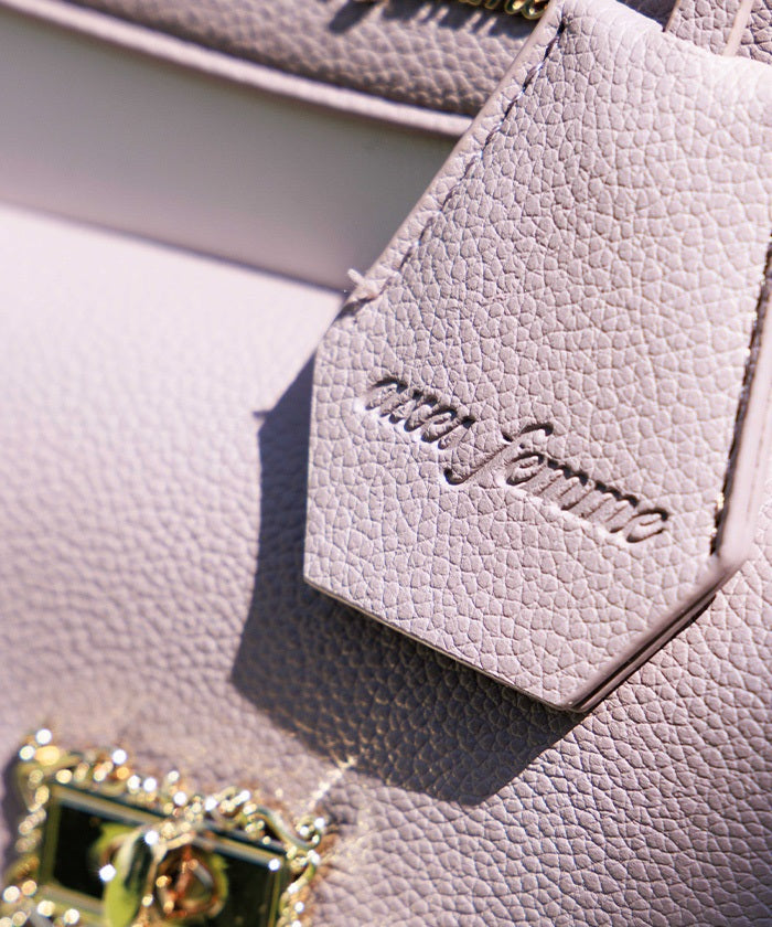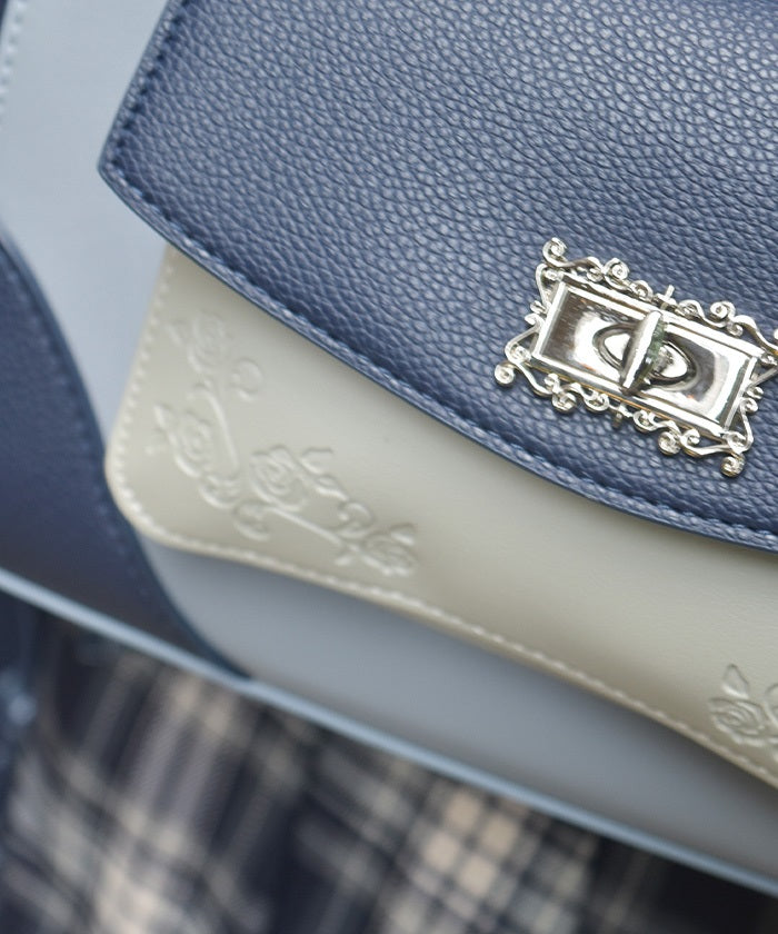 The front features a rose embossed design, and metal accents add a touch of elegance.