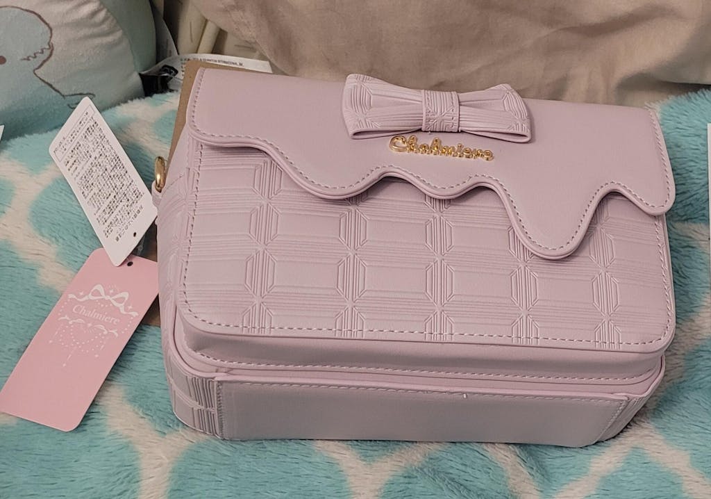 This faux leather bag features an embossed chocolate bar design. It's the perfect size for a quick outing.