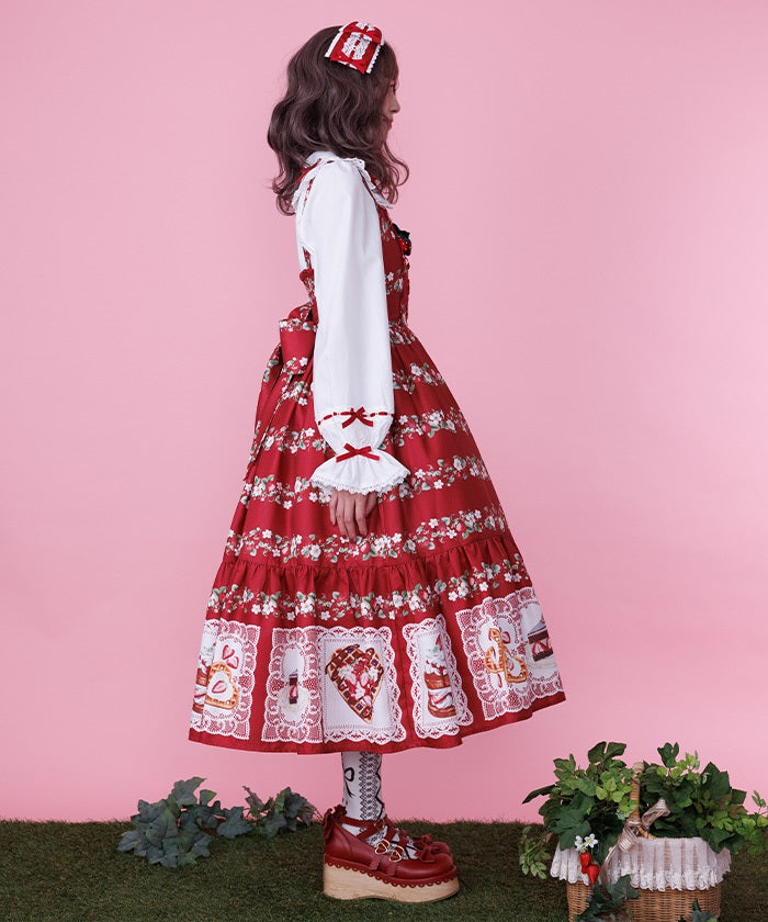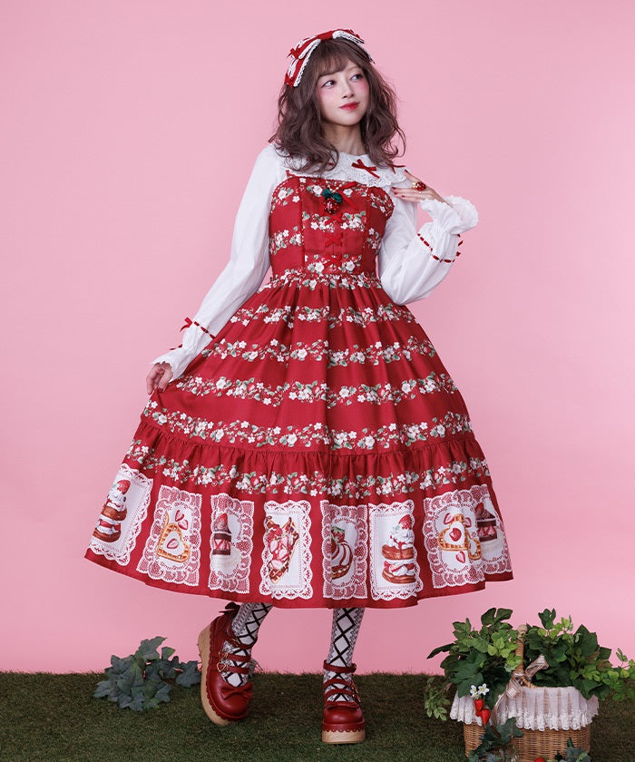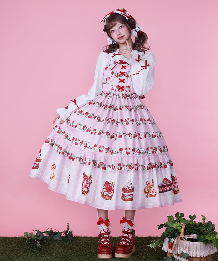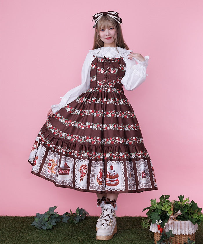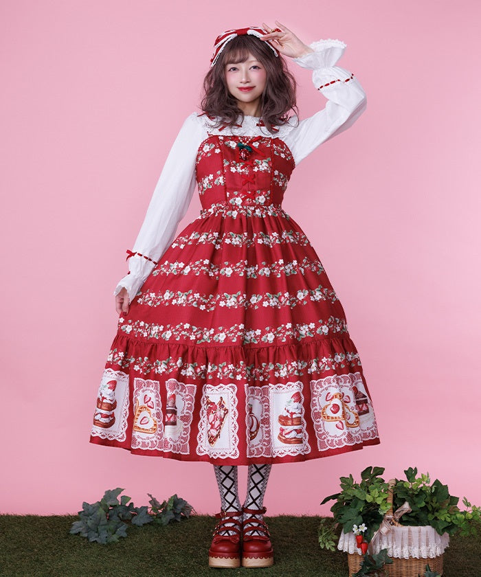 We recommend wearing it with a pannier to give the skirt some poof♡ With its long length, you can pair it with the matching apron and the cute hem print will still be visible. For a more casual look, try it with a knit pullover as an inner layer.