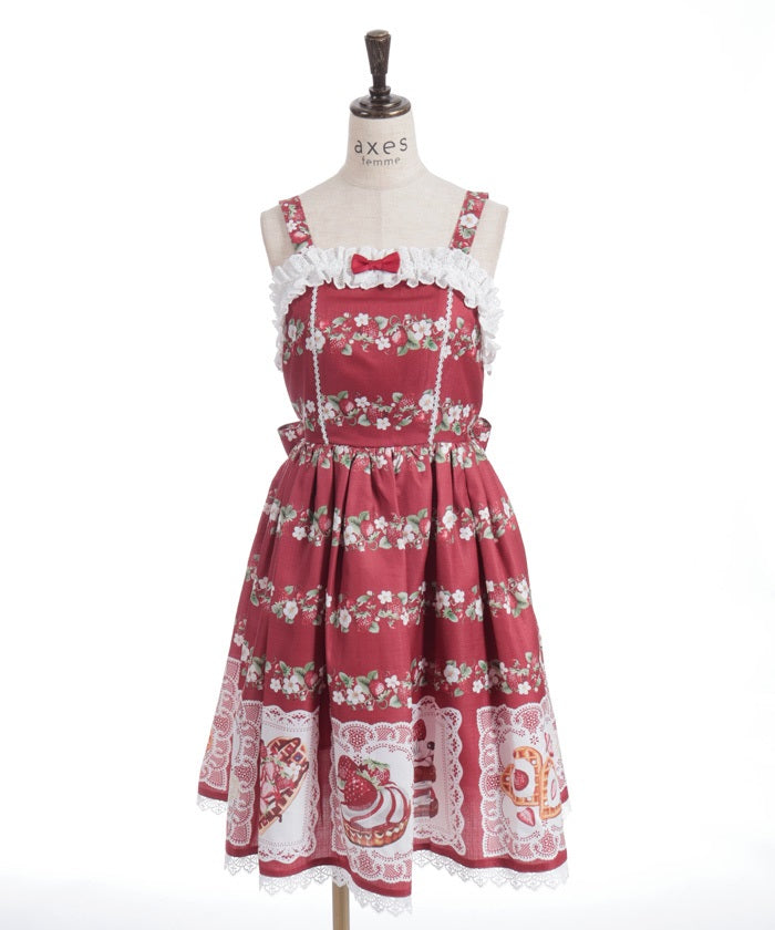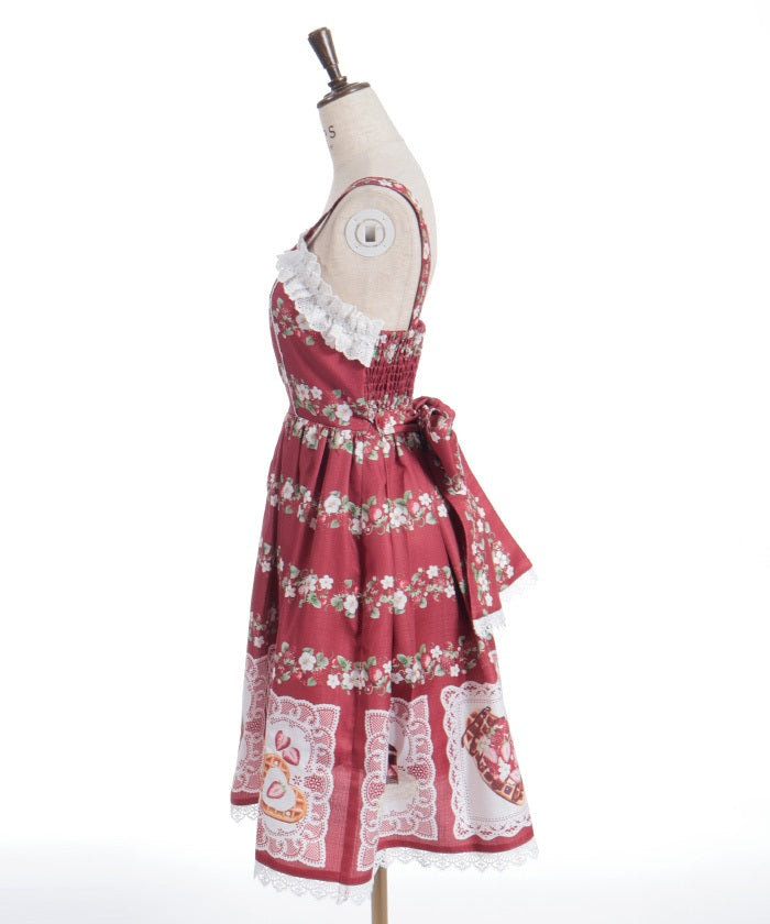 A jumper skirt with a cute cotton lace neckline.