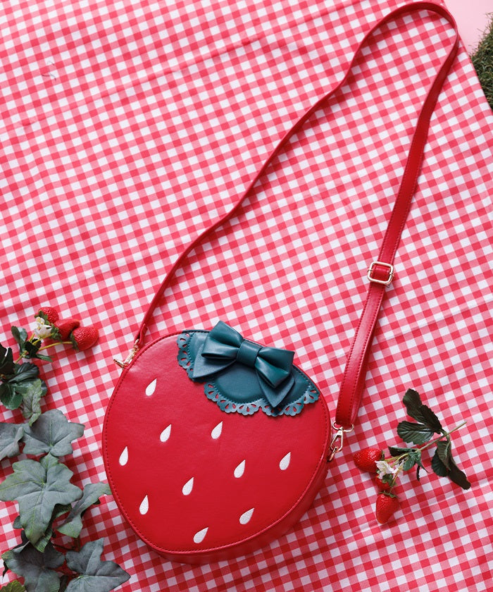 An adorably rounded strawberry bag.