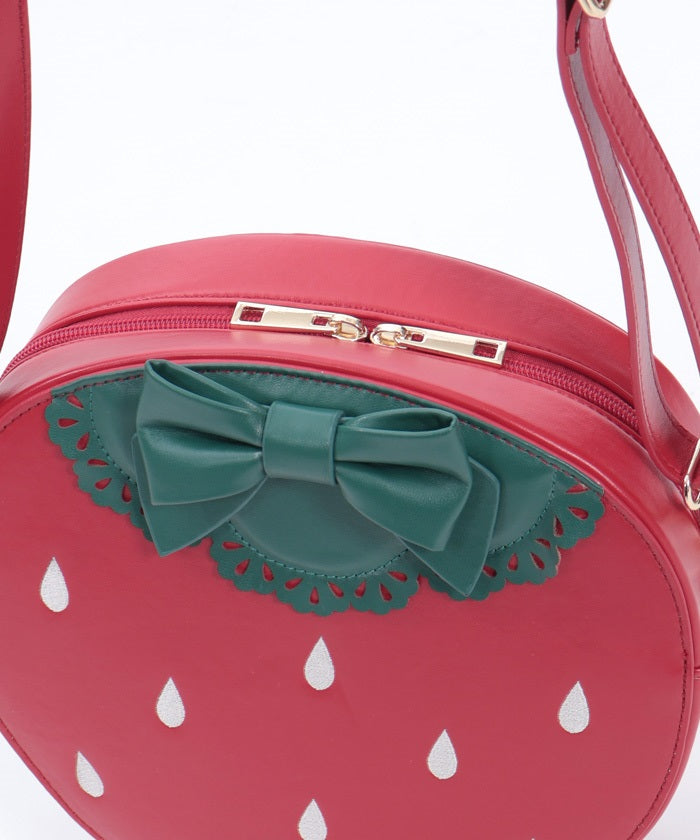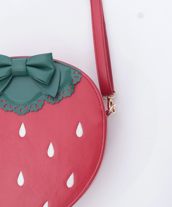 The strawberry stem is punched out with a lace-like design, while the seeds are embroidered. This bag can be carried hanging from your shoulder.