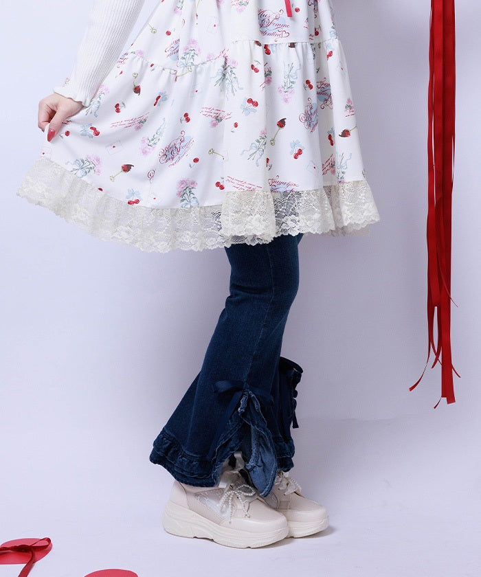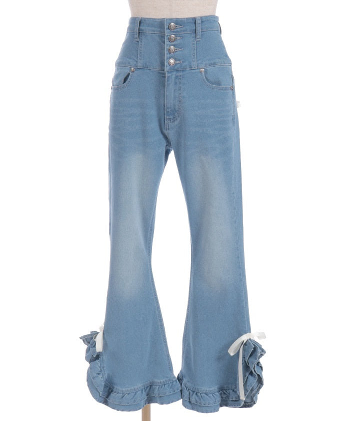 A denim design that's perfect for everyday wear, with an added touch of subtle cuteness from the hem frills.