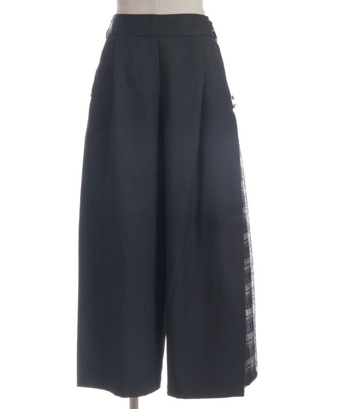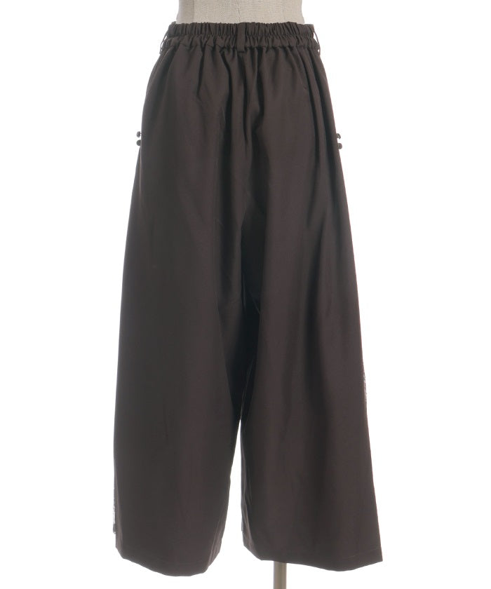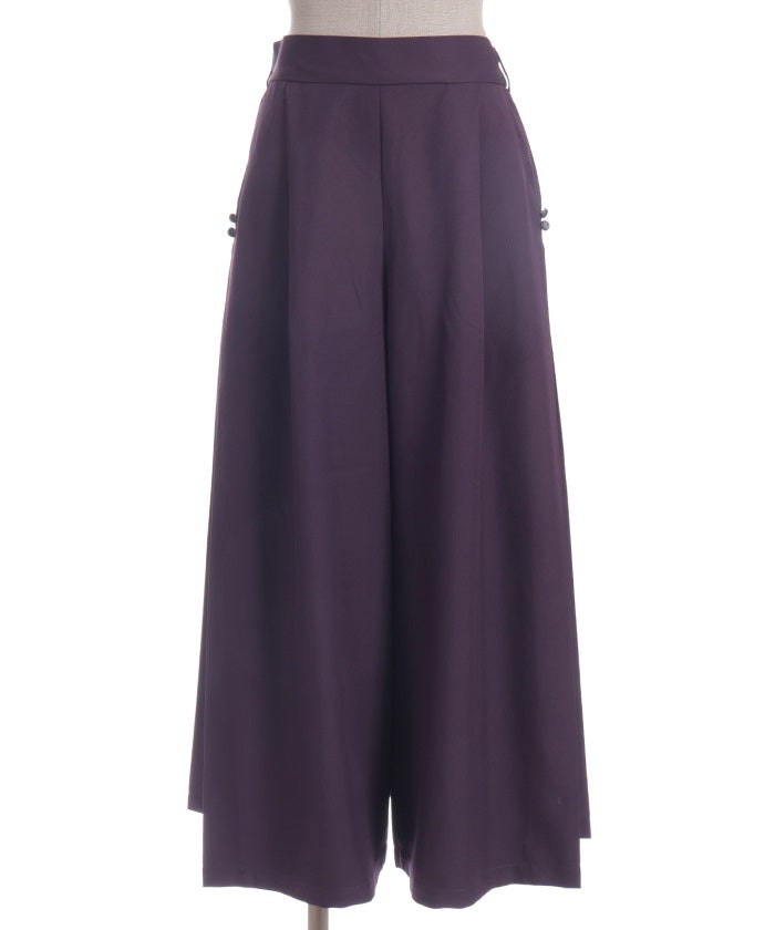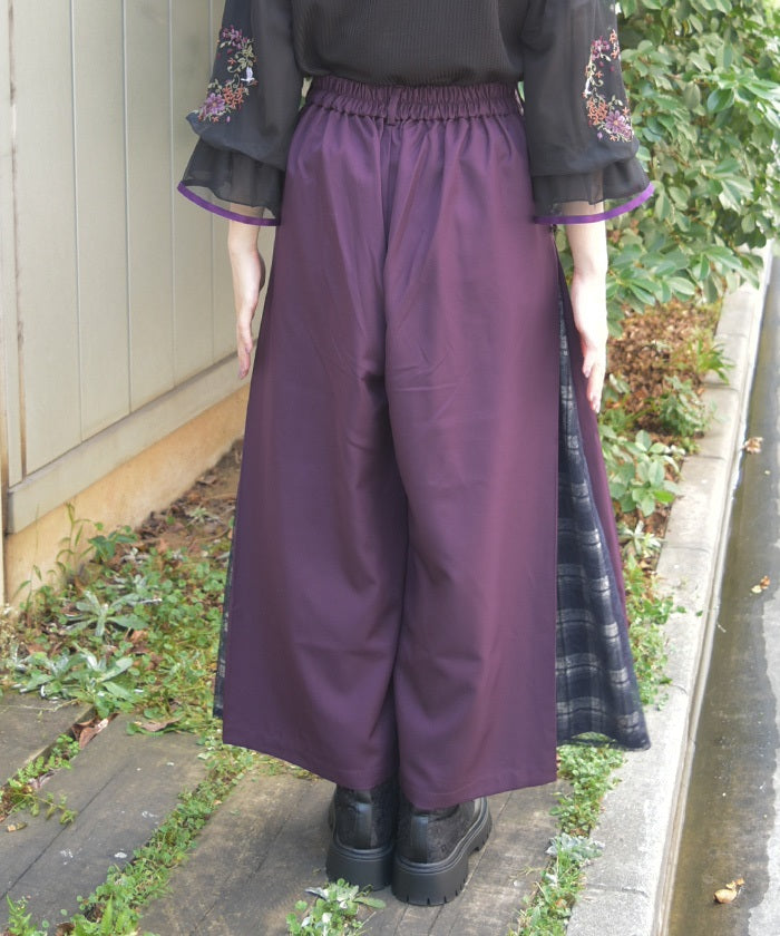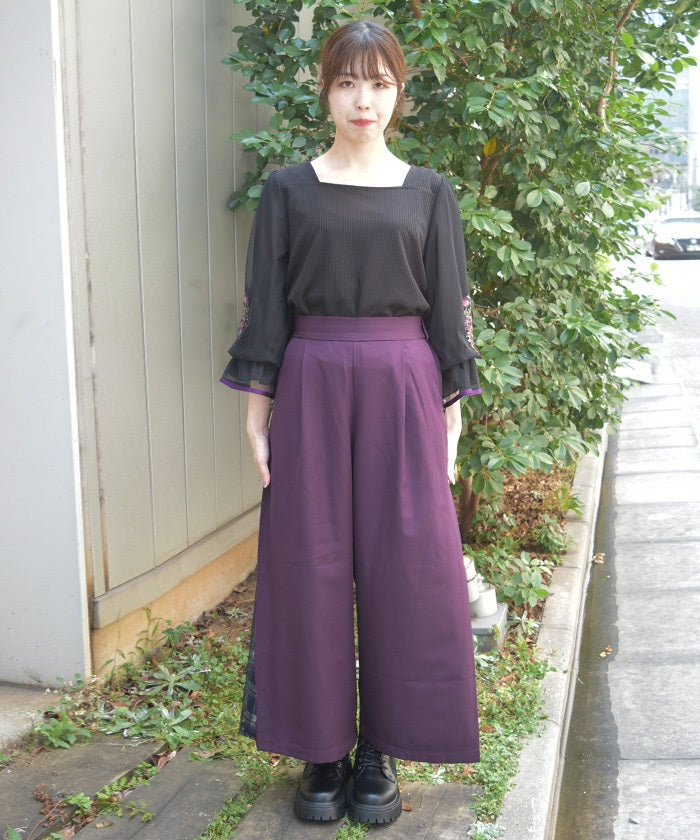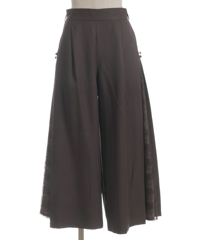 These wide-leg pants feature a patterned design that peeks out from both sides as you move.