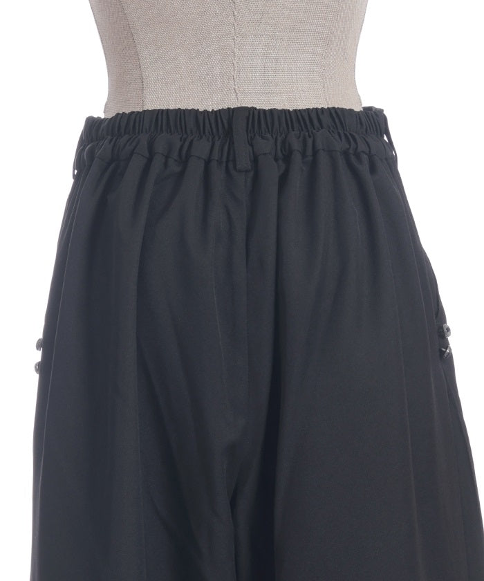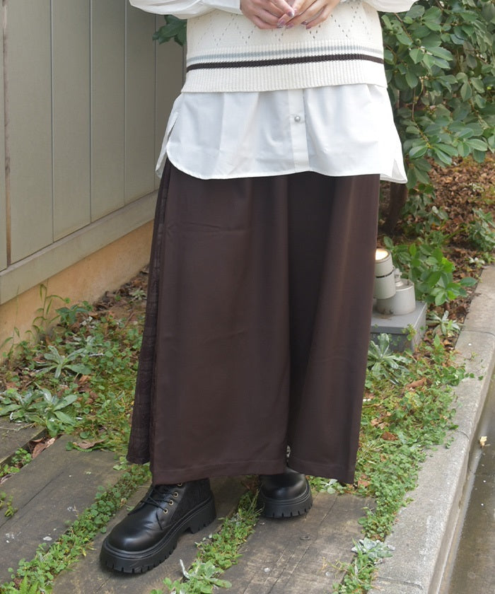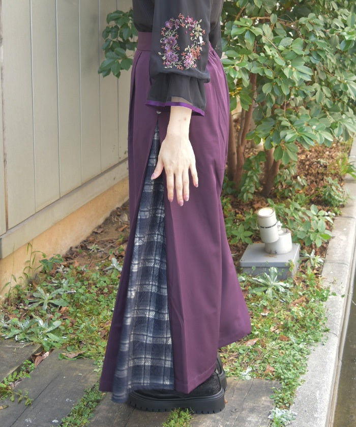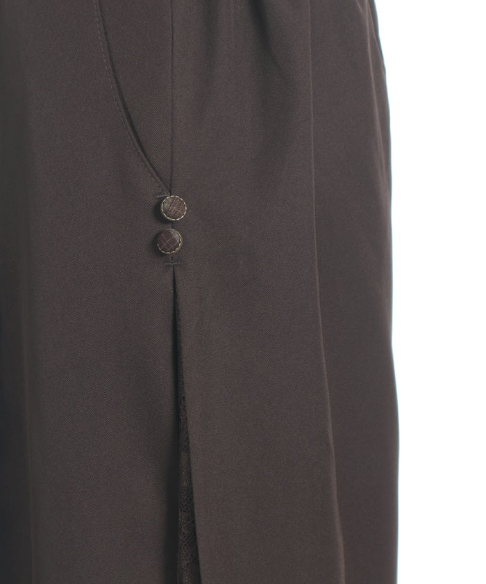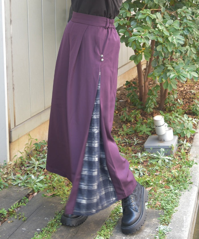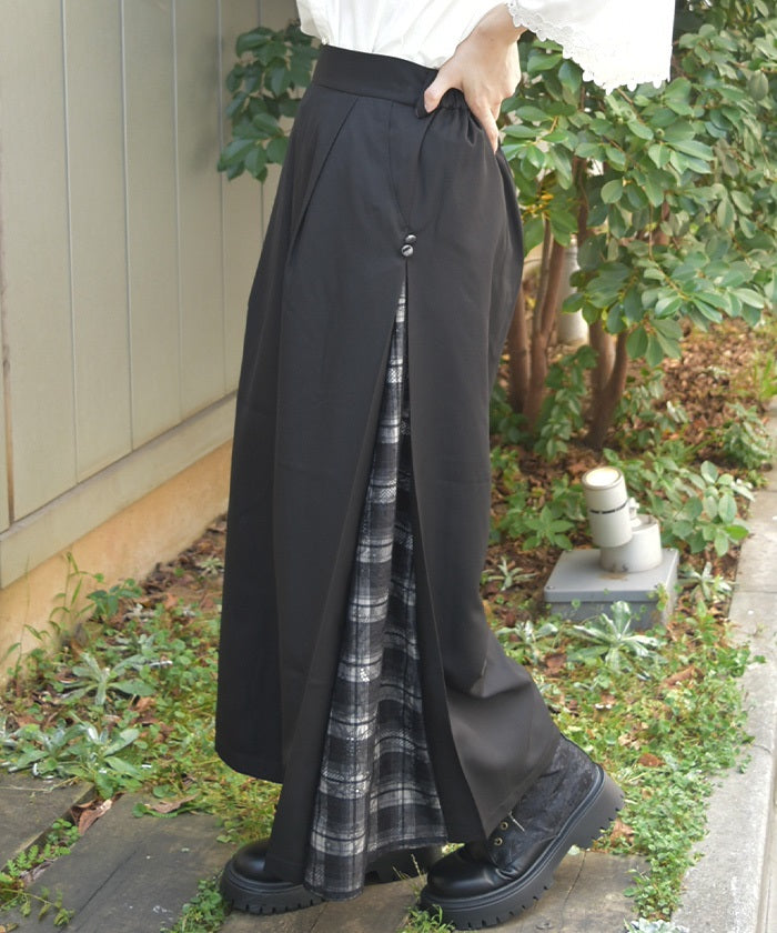 These wide-leg pants feature a patterned design that peeks out from both sides as you move.