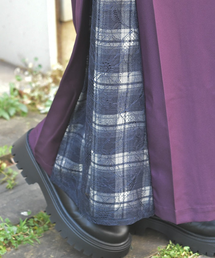 The sides feature a seasonal checkered pattern layered with lace for a feminine touch.