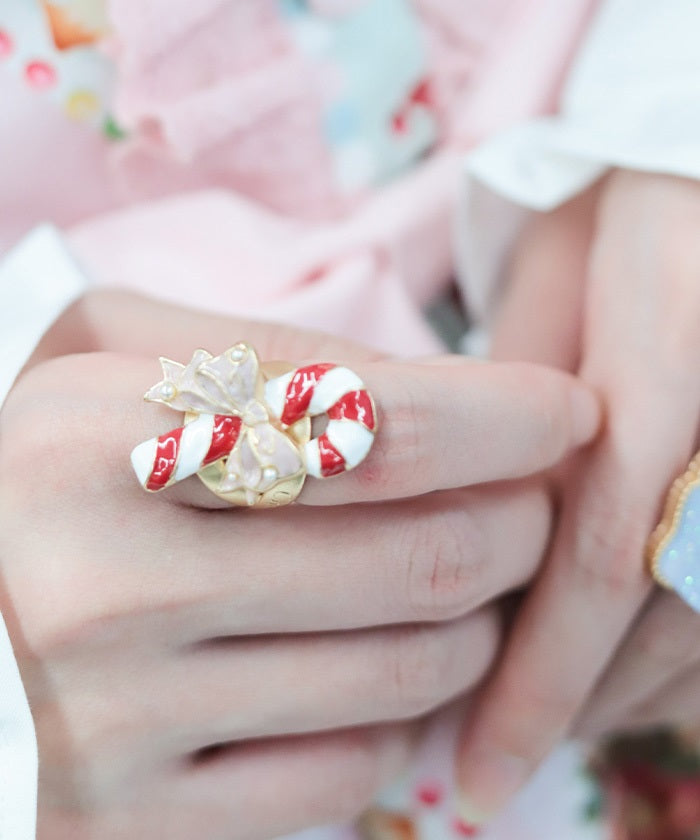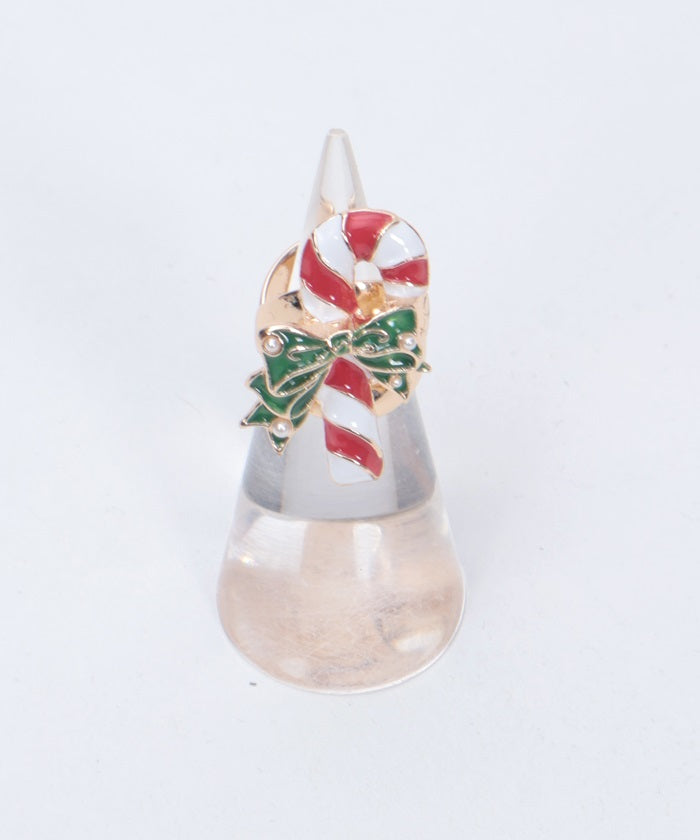 Have yourself a ring with a candy cane design! With this, you can feel the spirit of Christmas glowing warmly on your hand. The ring base is designed to resemble crossed ribbons and features the Chalmiere logo.