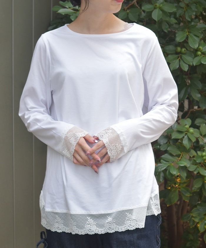 Lace Design Long T-Shirt (Time-limited Price)