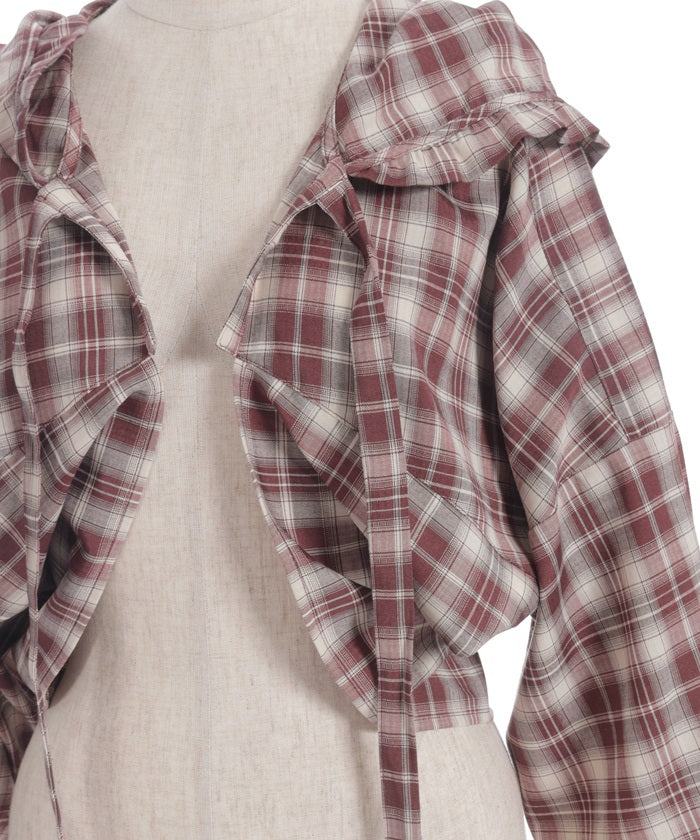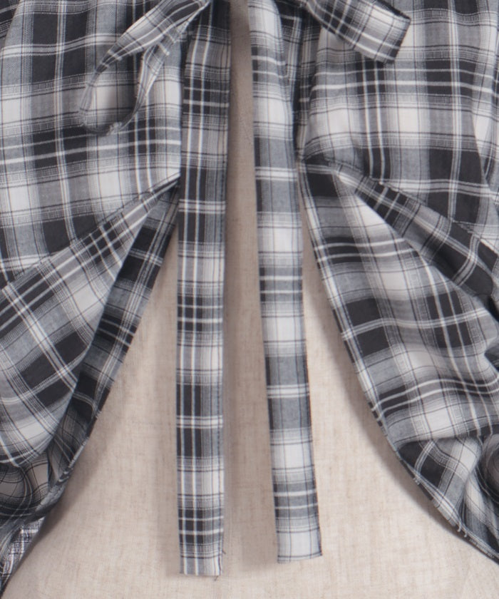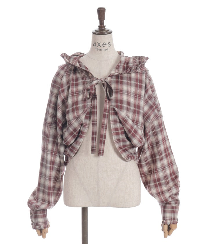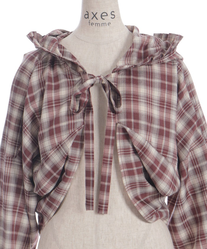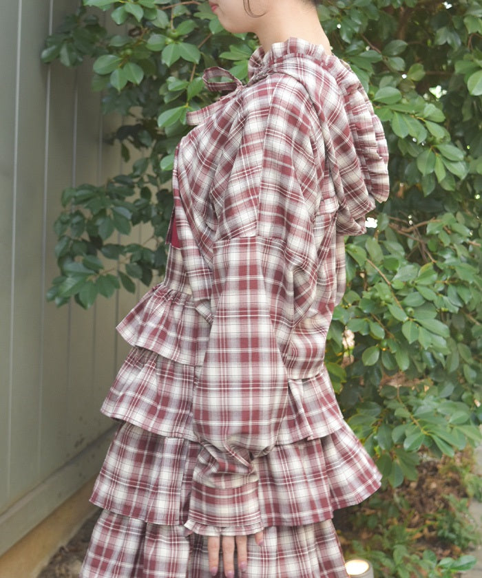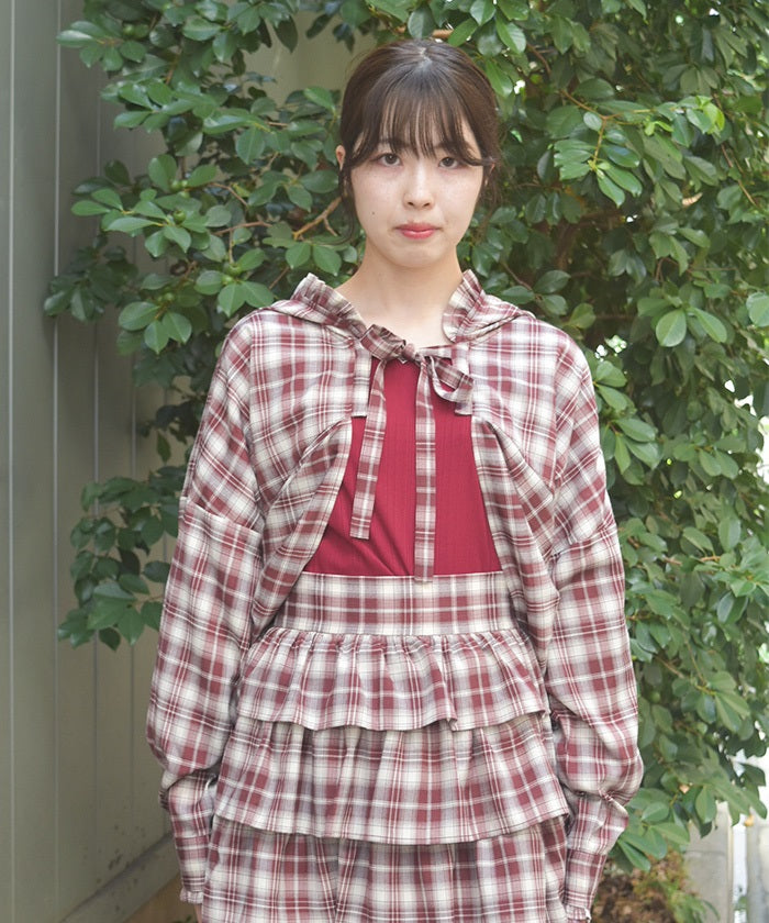 The compact length creates a clean, streamlined look around the waist, while the ribbon tie and hood add a cute accent. The geeky check pattern is both classic and trendy, elevating your look.