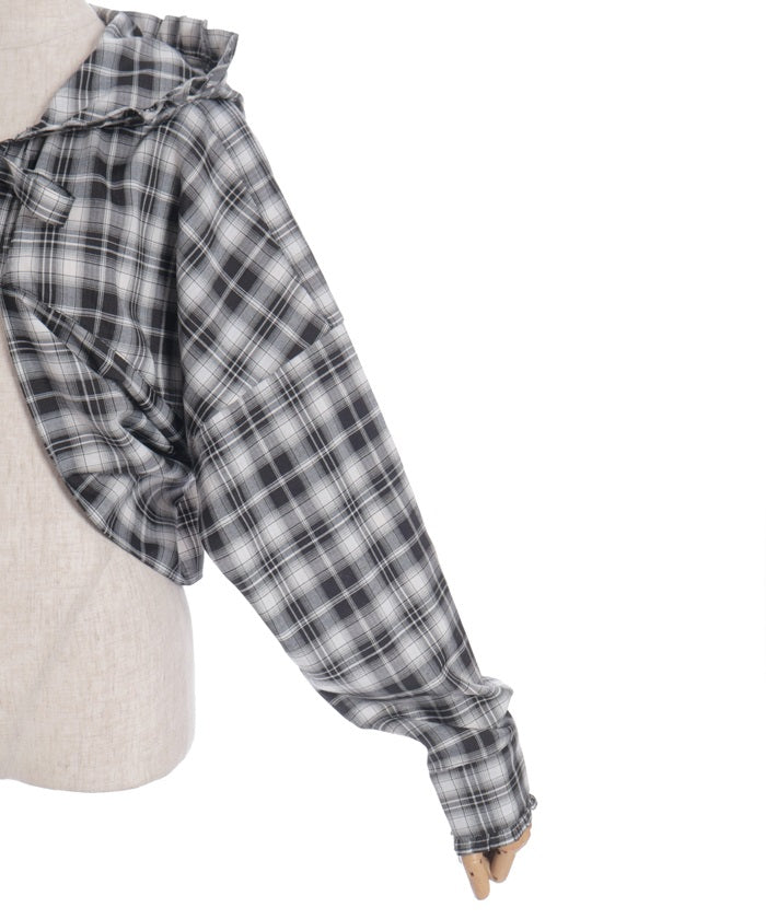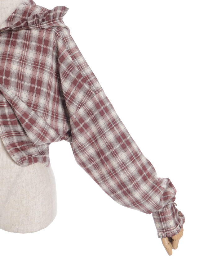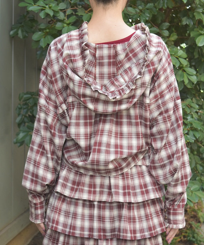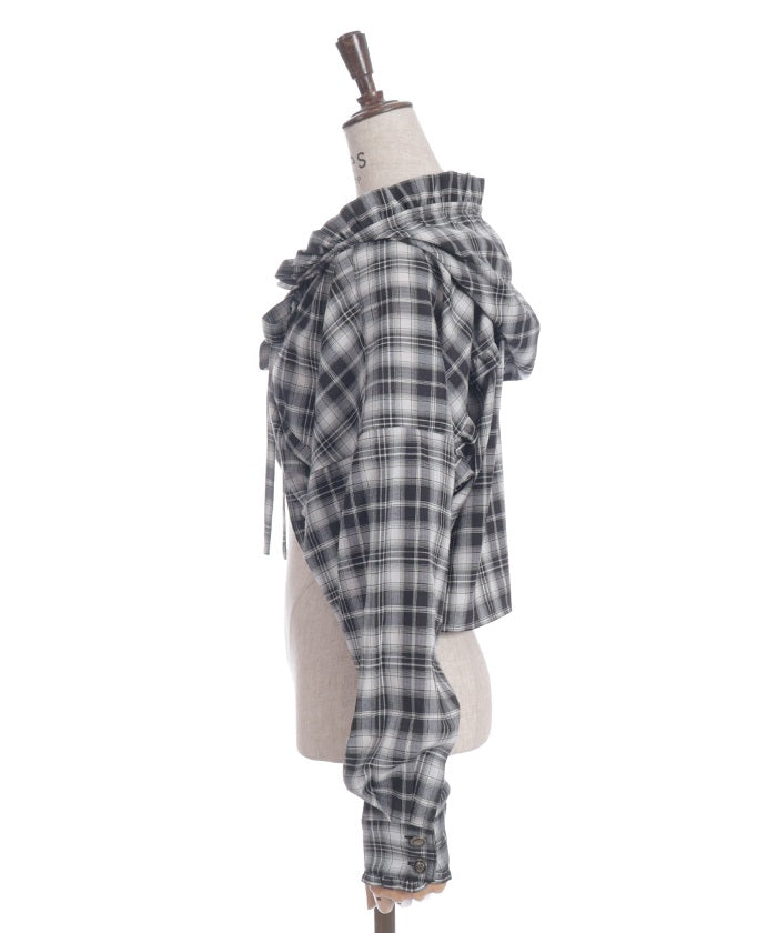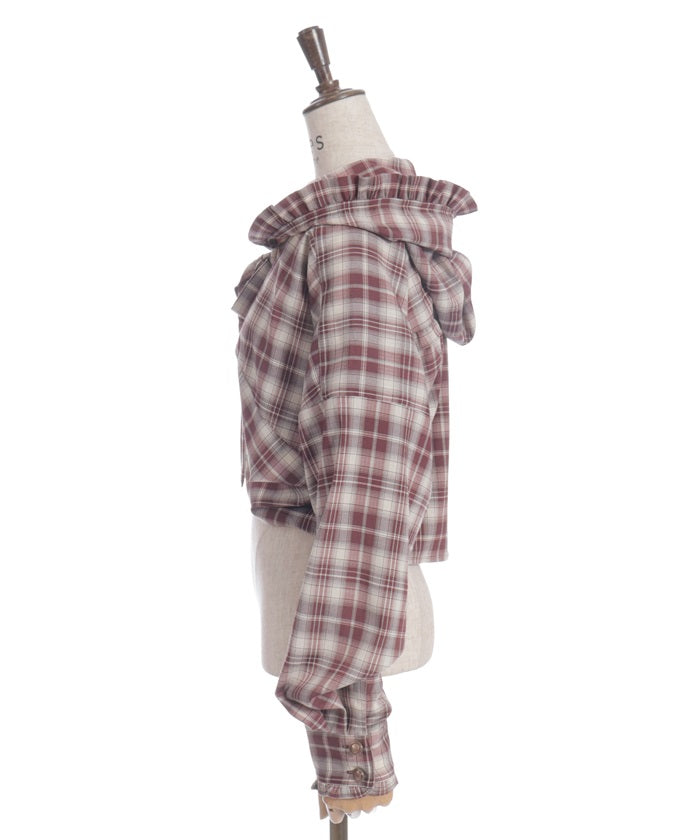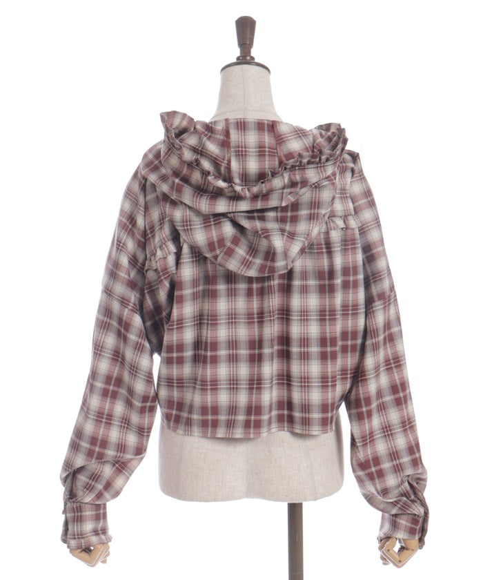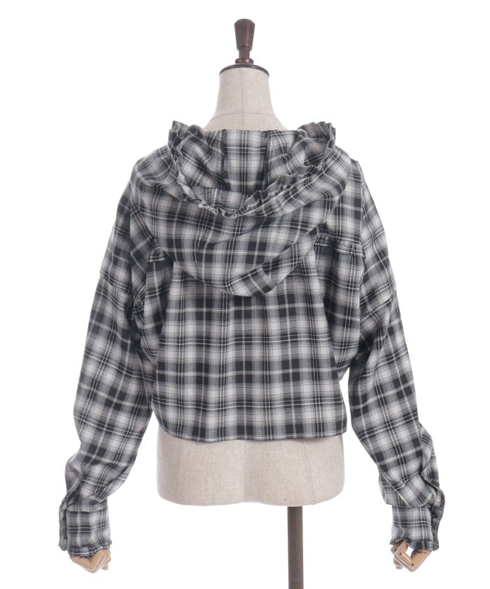 This check shirt features a fresh hoodie and a short length. In addition to its casual comfort, the geeky check pattern elevates any outfit.
