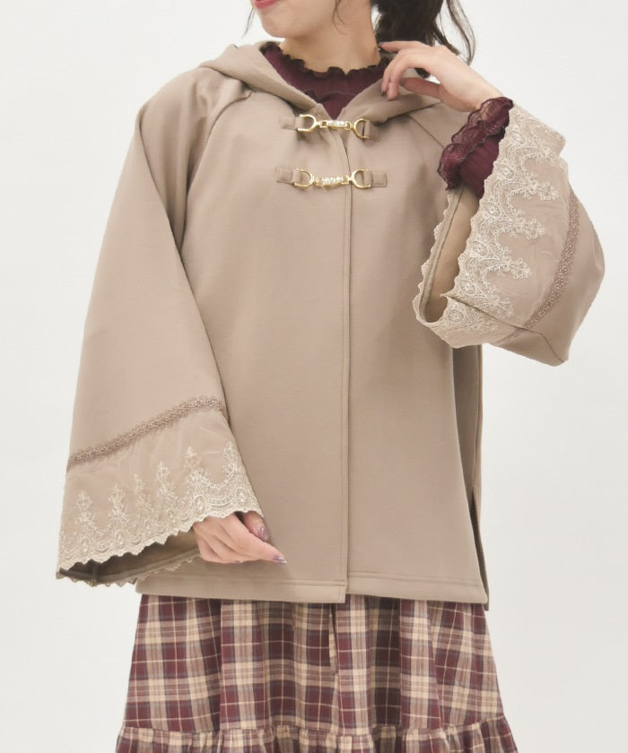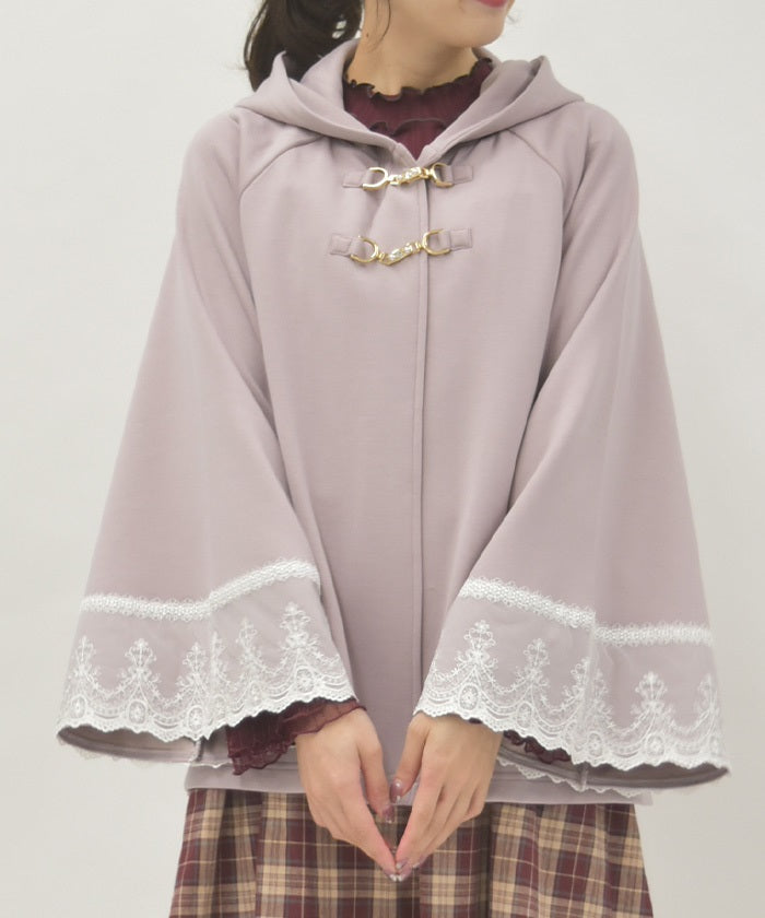 A cape made of stretchy, lightweight, and soft double knit fabric.
